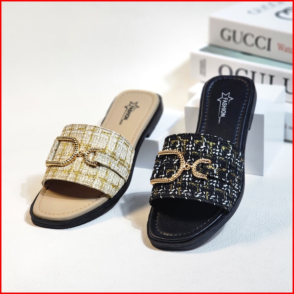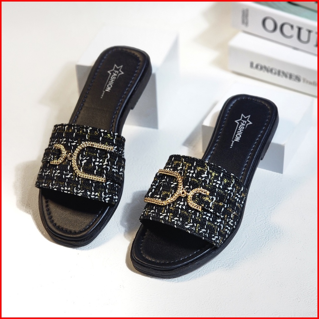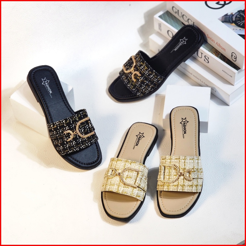 Keyra - Sandal Teplek Wanita Kekinian Sandal Slip On Cewek Model Rajut Gesper Pita D Terbaru