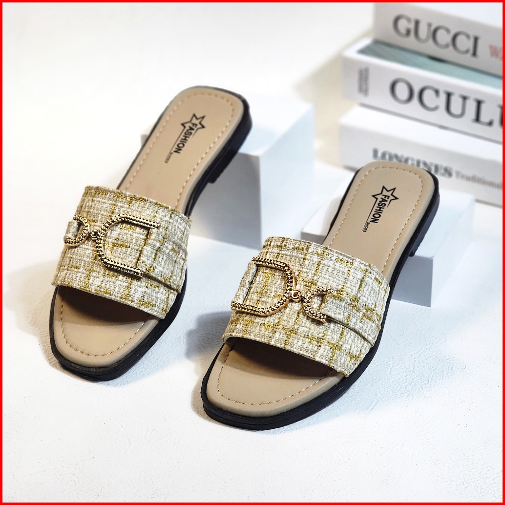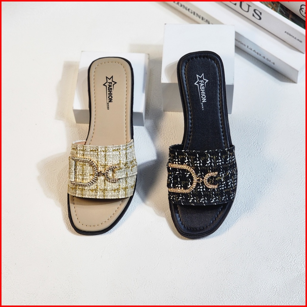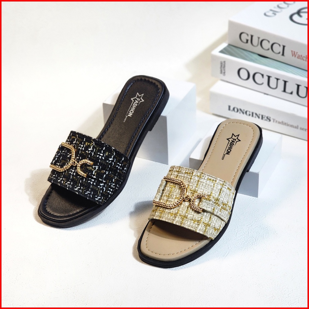 Keyra - Sandal Teplek Wanita Kekinian Sandal Slip On Cewek Model Rajut Gesper Pita D Terbaru