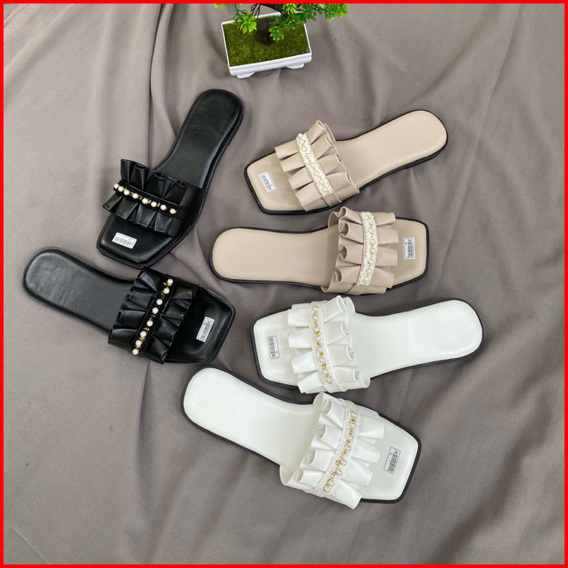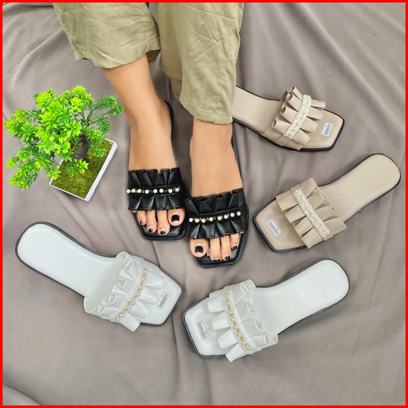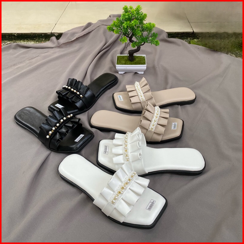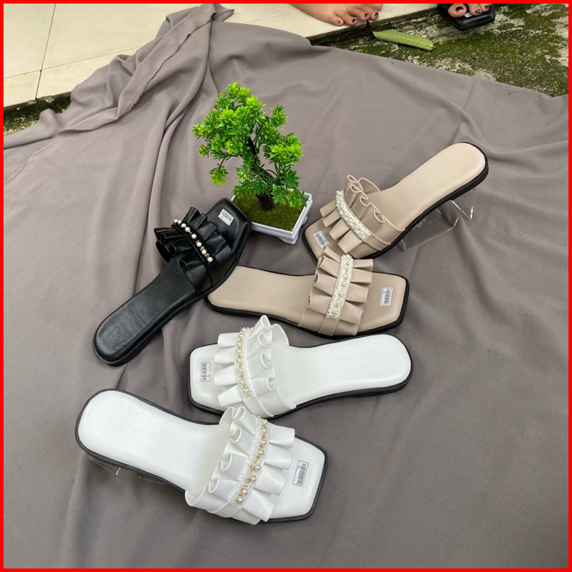 Rayyan Sandal Slop Wanita Teplek Perempuan Variasi Mutiara Sendal Wanita