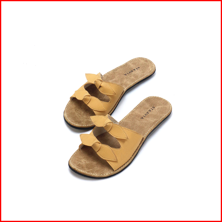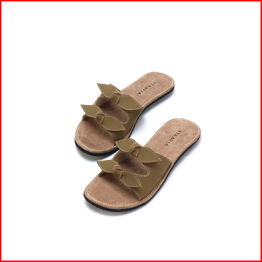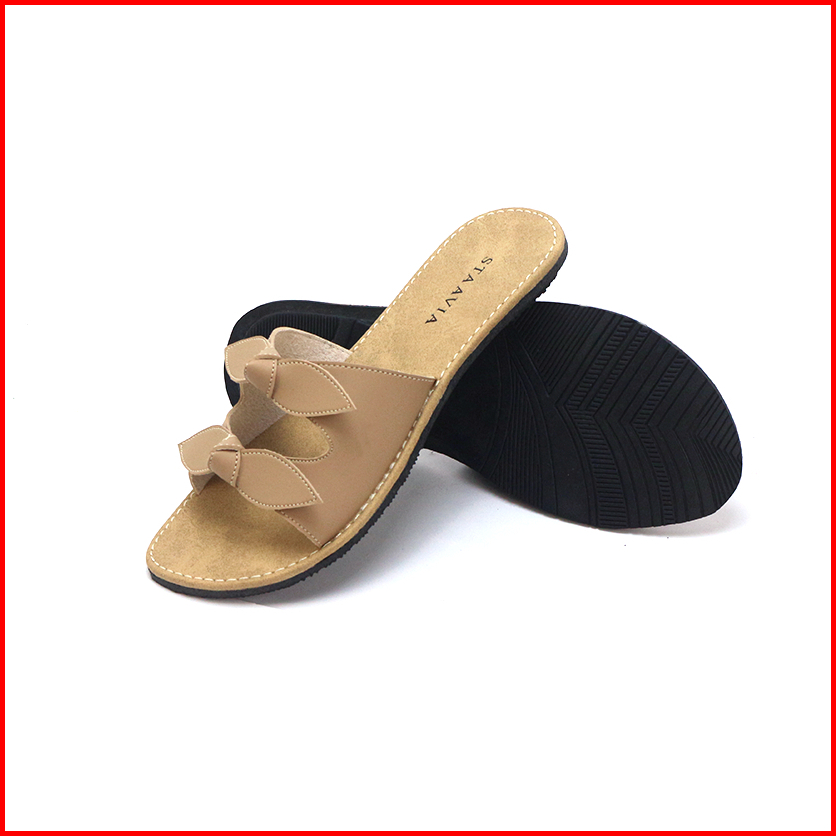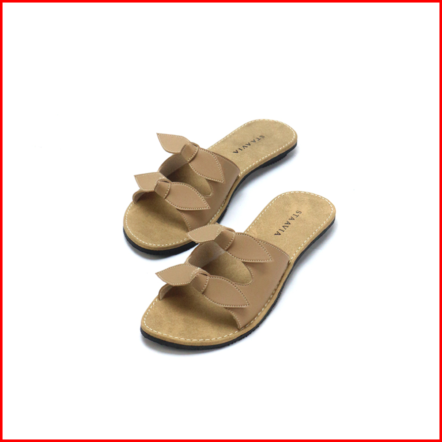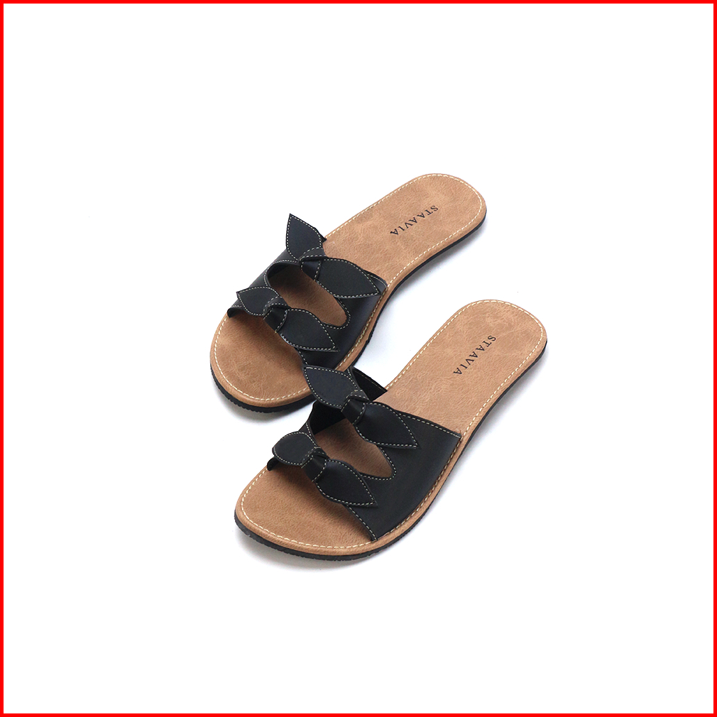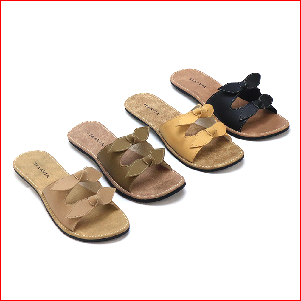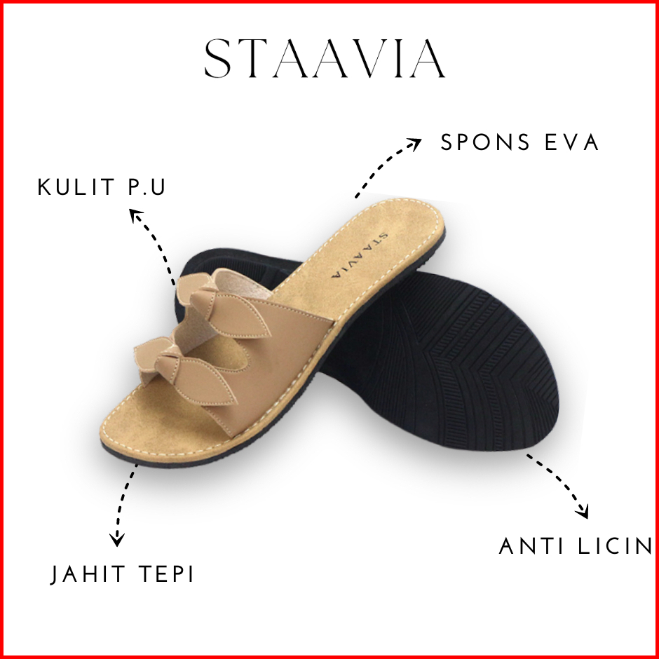 Staavia - Deana Sandal Flat Wanita Bahan Kulit Sintetis Motif Pita Alas Anti Licin Sandal Teplek