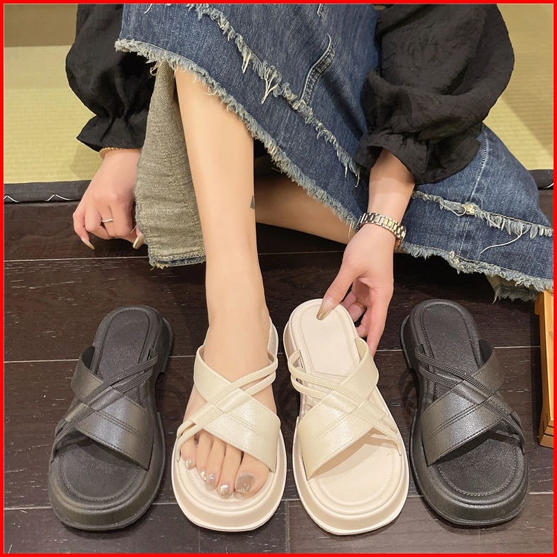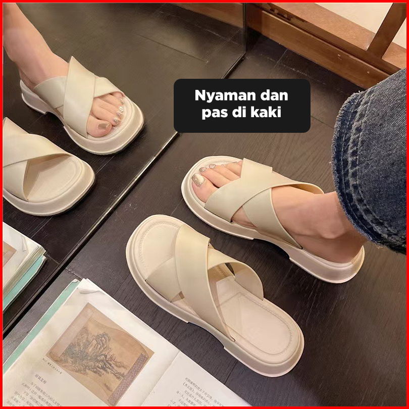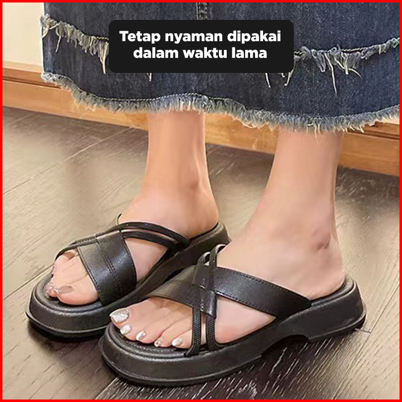 Greenland Sandal Wedges Wanita Anti Slip Empuk Nyaman Tali Silang Jelly Eva Elegan Fashion Hsn209