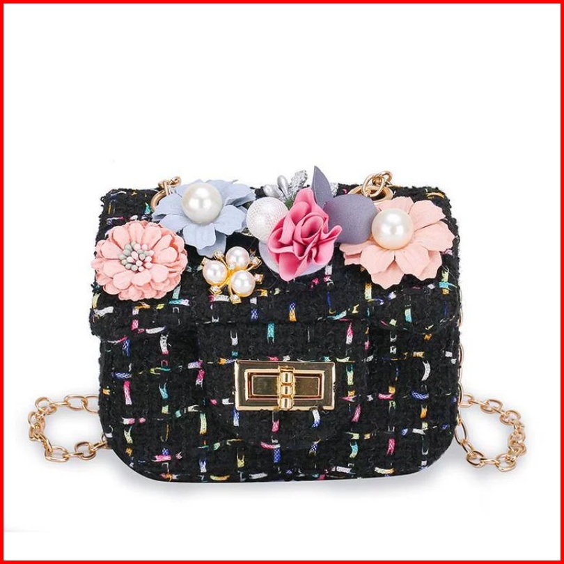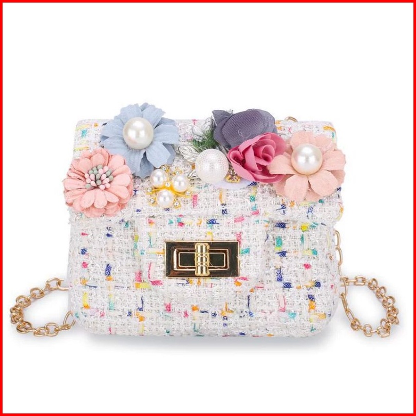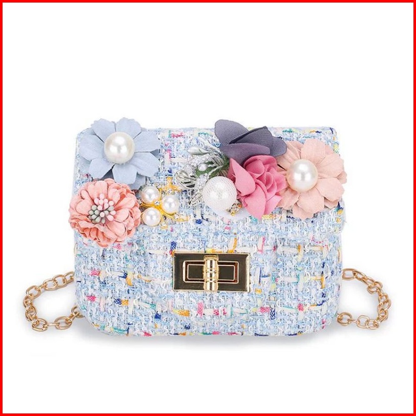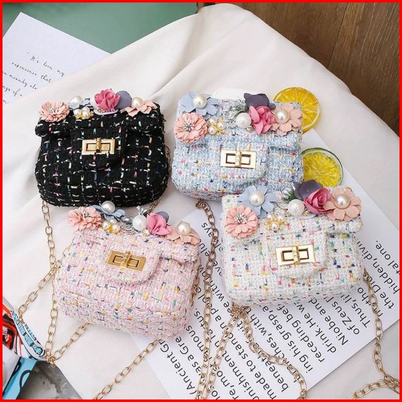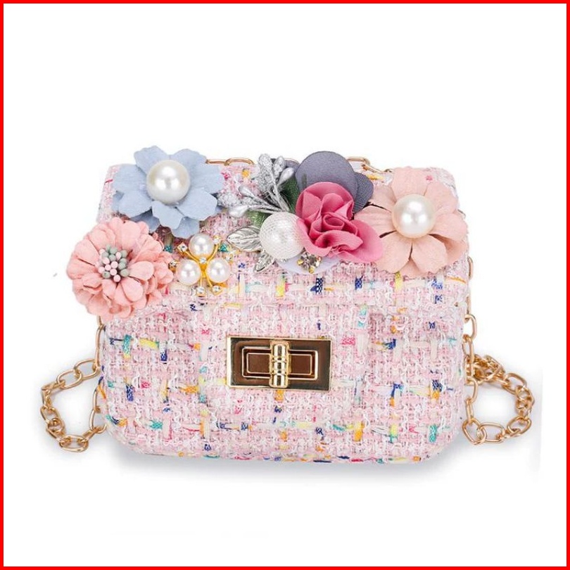 15 Shop --- Tas Anak Perempuan Selempang Chain Korea Fashion Flowers Pearl