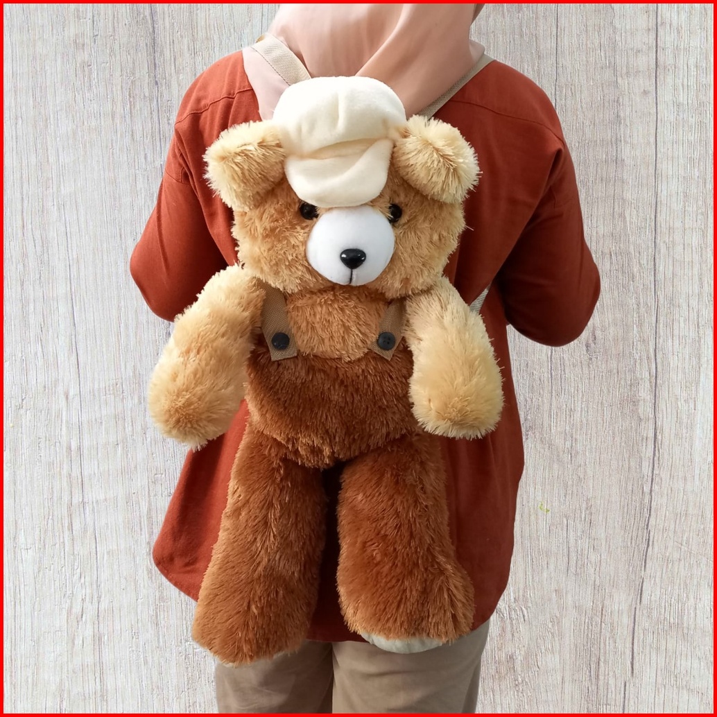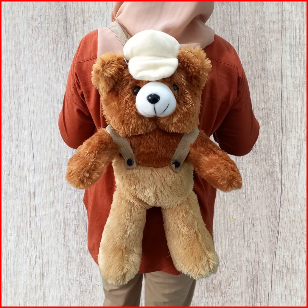Tas Ransel Anak Perempuan Tas Remaja Karakter Boneka Beruang Bertopi Tas Gendong Lucu Gemoy