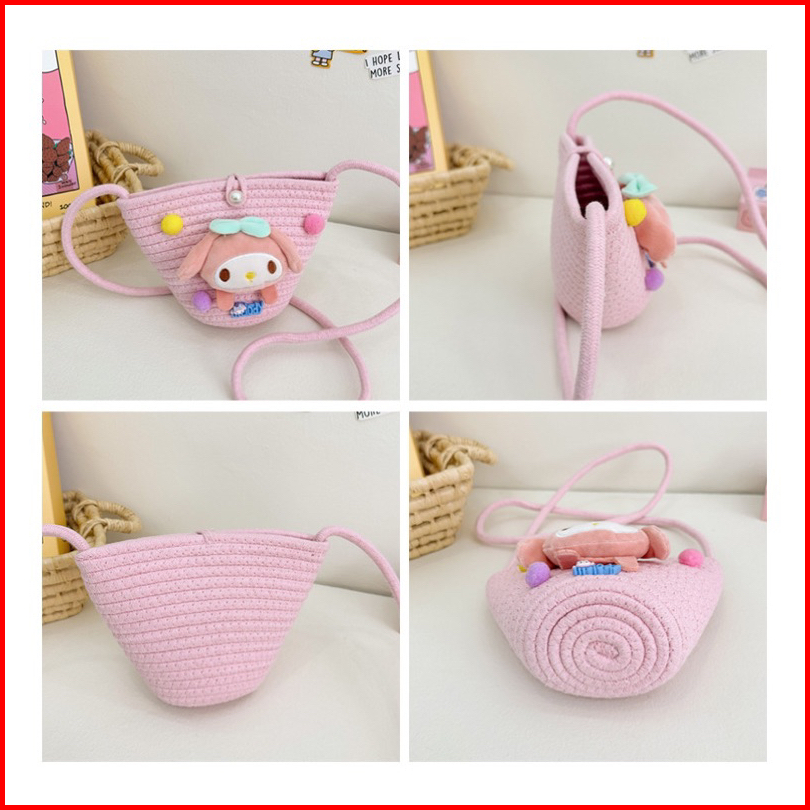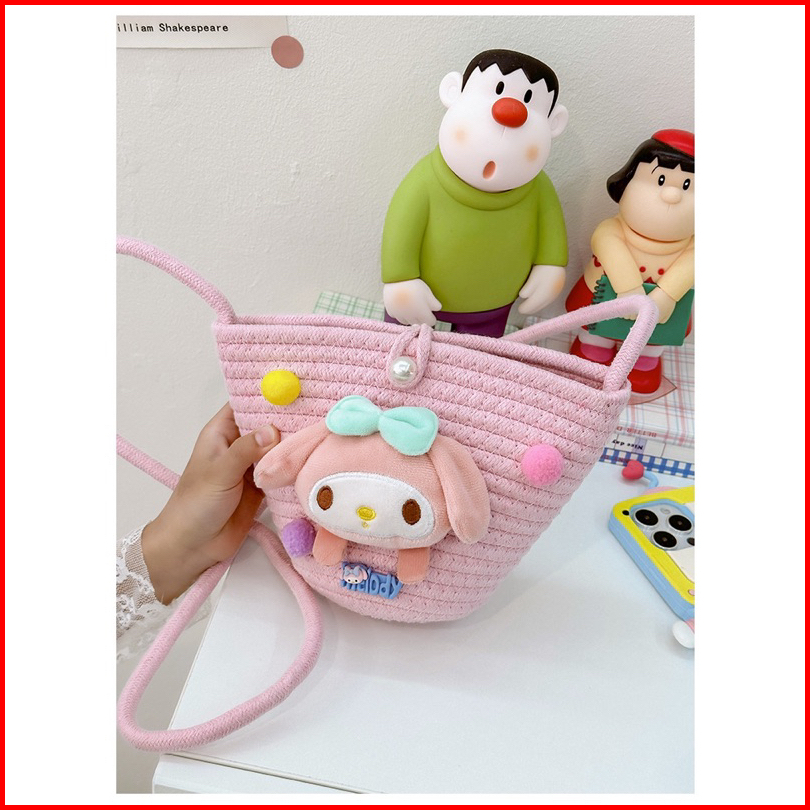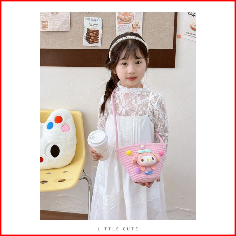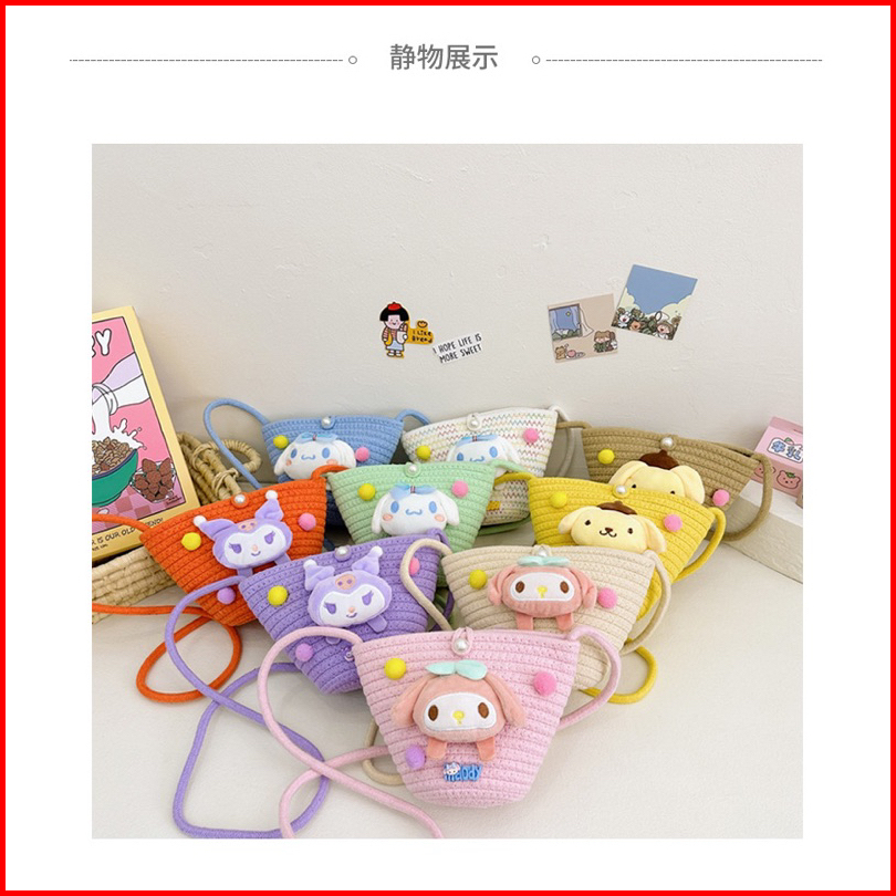 Tas Selampang Anak Perempuan Karakter Kuromi Cinamorol Melody Rajut