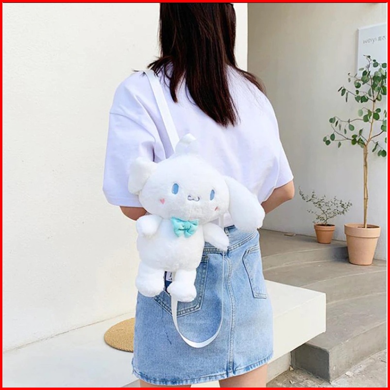 Tas Ransel Bulu Kawaii My Melody Cinnamoroll Sanrio Boneka Lucu Kartun Mewah Ransel Anime Mainan Lembut Untuk Anak Perem