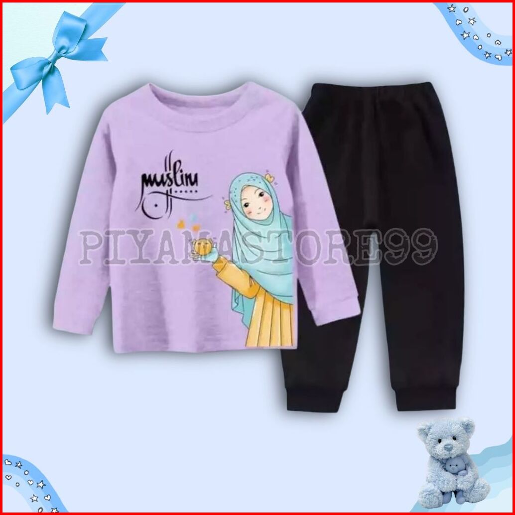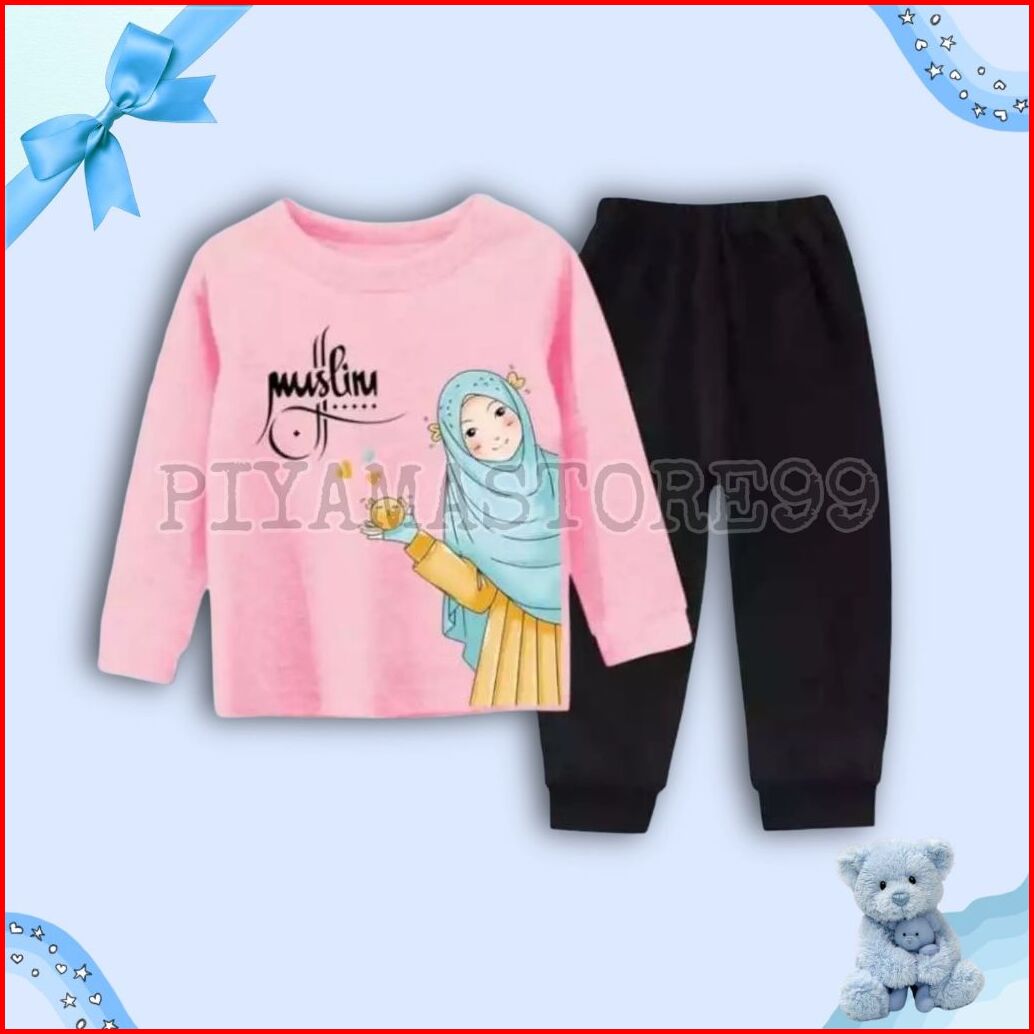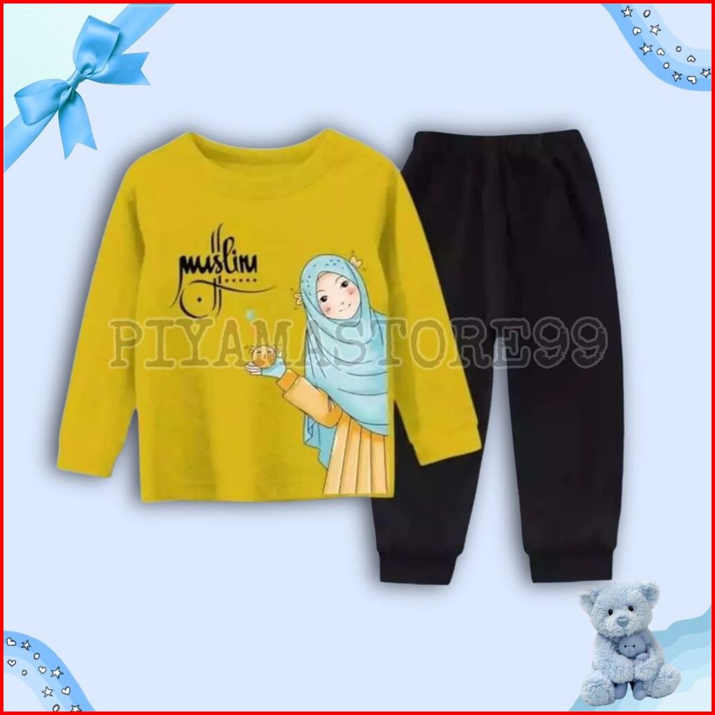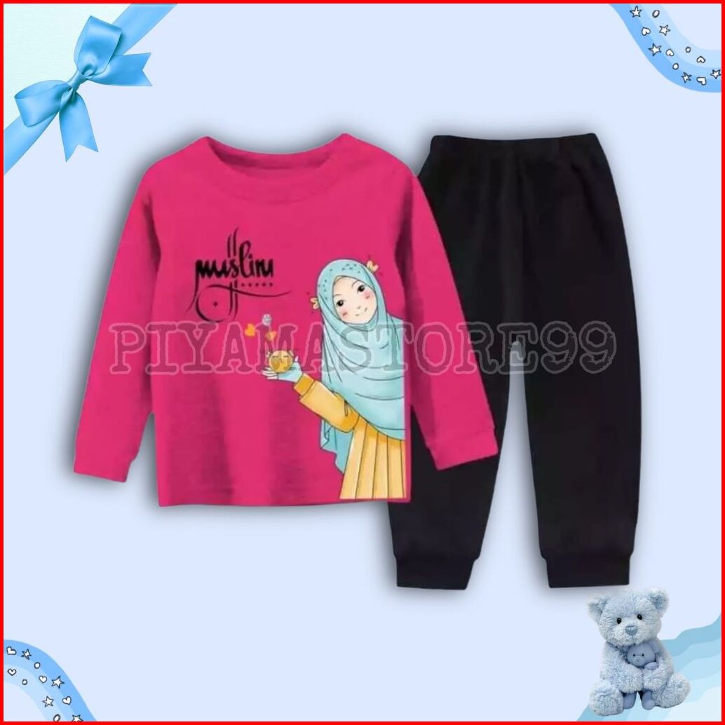 Setelan Sweater Hijab Muslim Kaos Lengan Panjang Anak-anak 1set Sweater Anak Size S 4-6thn M 7-9thn L 10-13thn