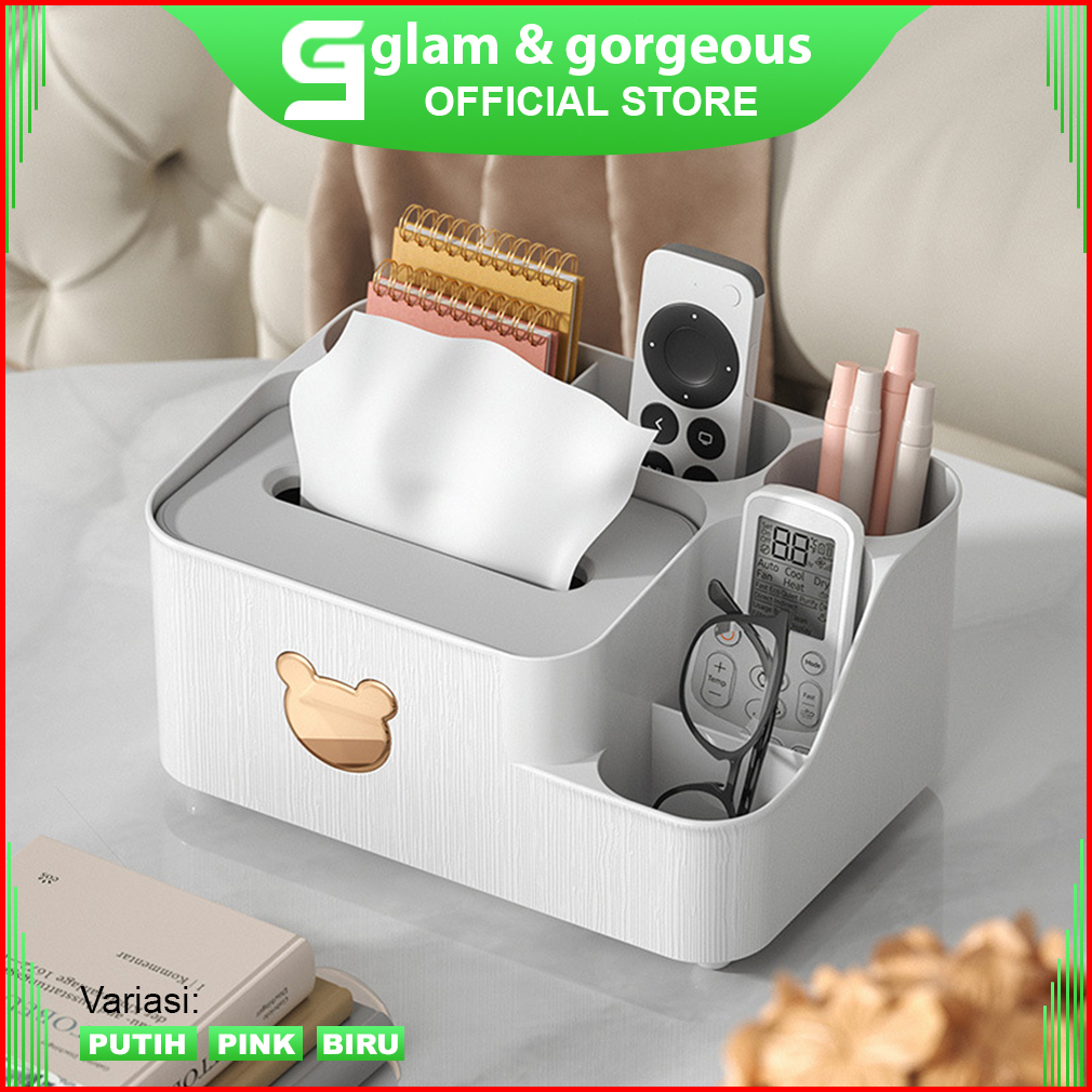 Kotak Tissue Estetik Rak Make Up Plastik Tempat Tisu Storage Desktop Organizer - Kt015