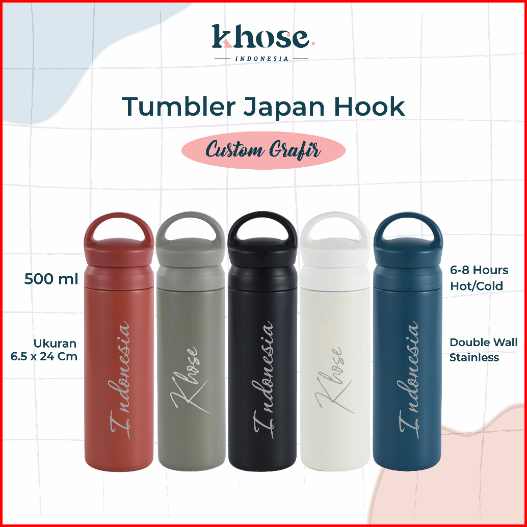 Khose Tumblr Custom Japan Hook Stainless Laser Grafir 500 Ml Cetak Nama Logo Souvenir Murah Botol Custom