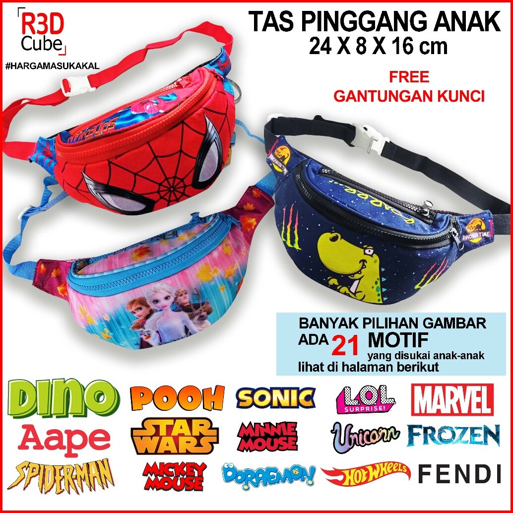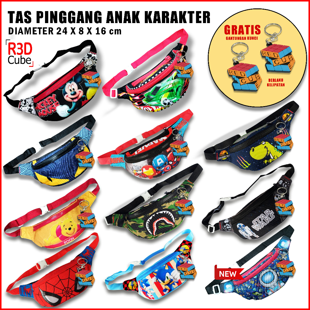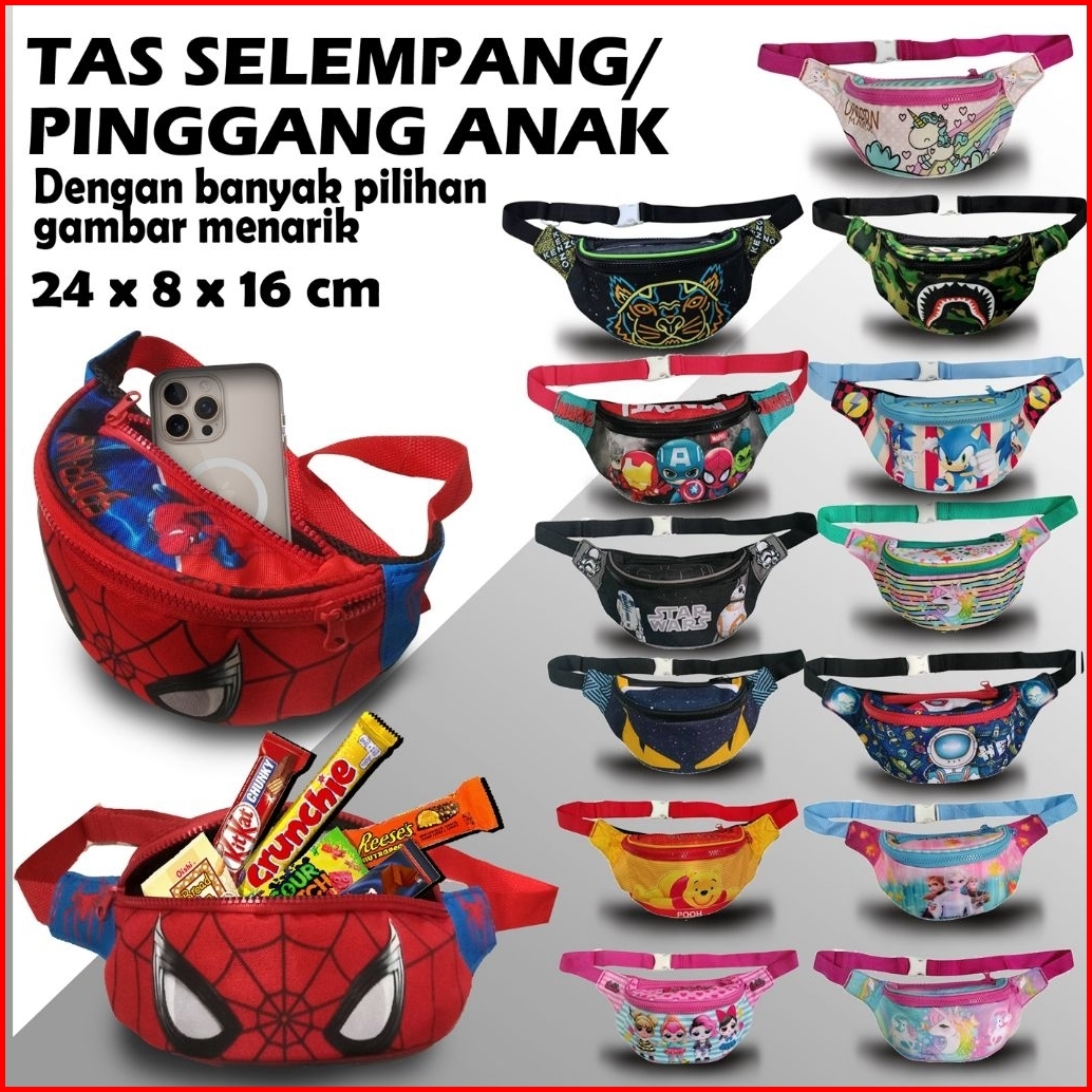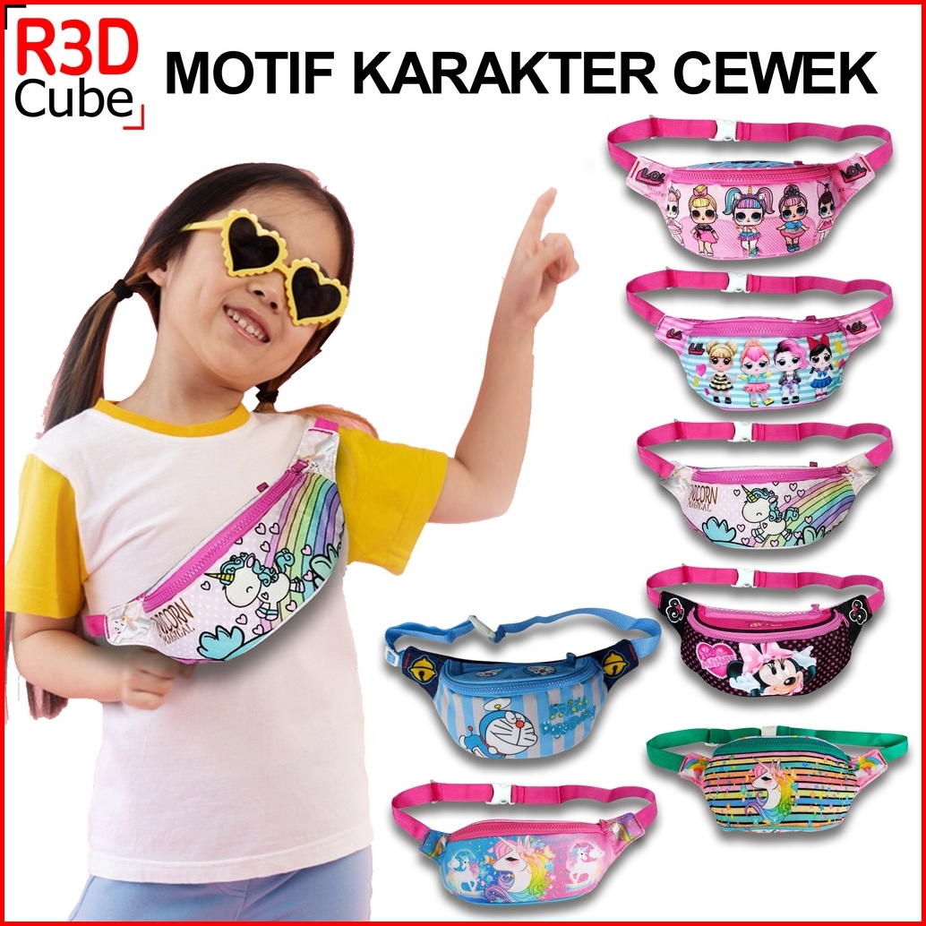 Tas Pinggang Fashion Anak Karakter Lucu Tali Adjustable Anti Air Ringan Stylish