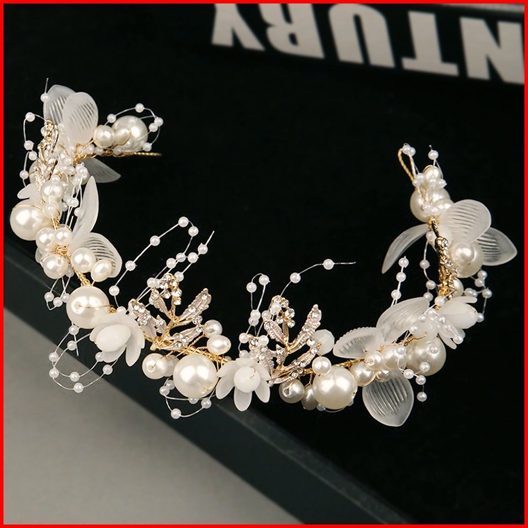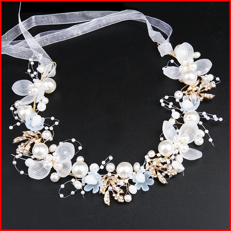 Hairpiece Keyko Bunga Mutiara Flower Pearl Bando Bandana Bunga Aksesoris Hiasan Rambut Bride Prewed Pengantin Bridal Wed