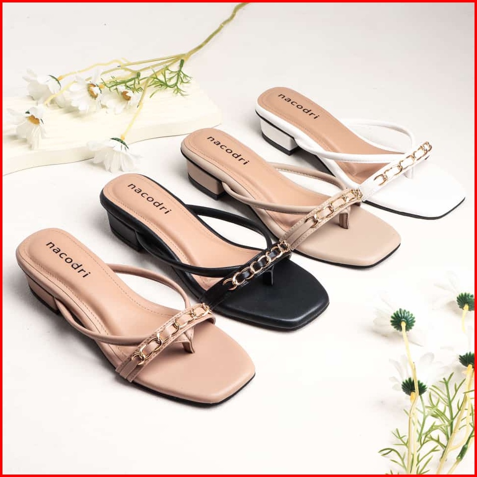 Nacodri - Ovita Sandal Wanita Heels 3cm. Variasi Rantai Premium