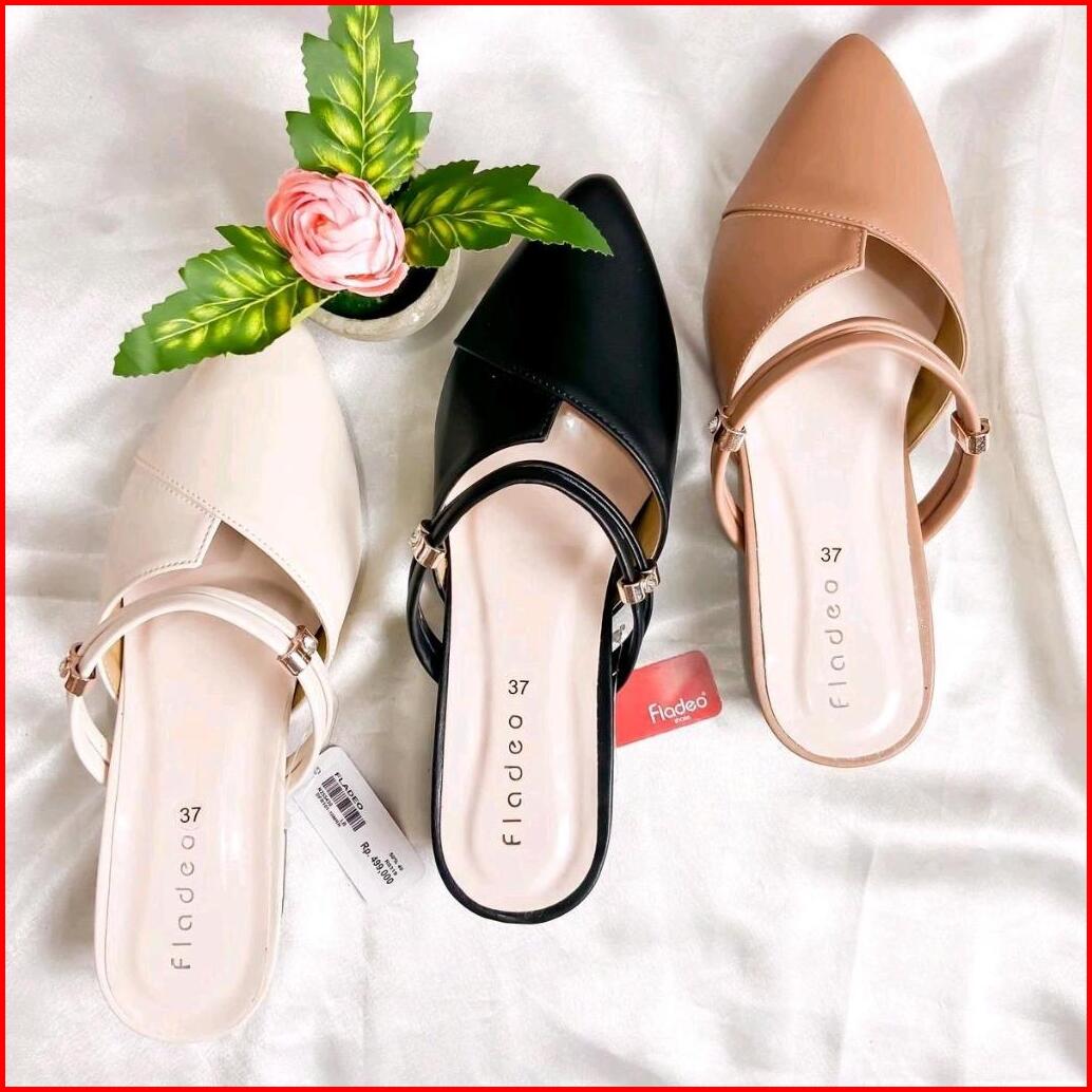 Fld Sandal Hak 3cm Atas Miring Tali Dua Cantik Dan Modis Trendy