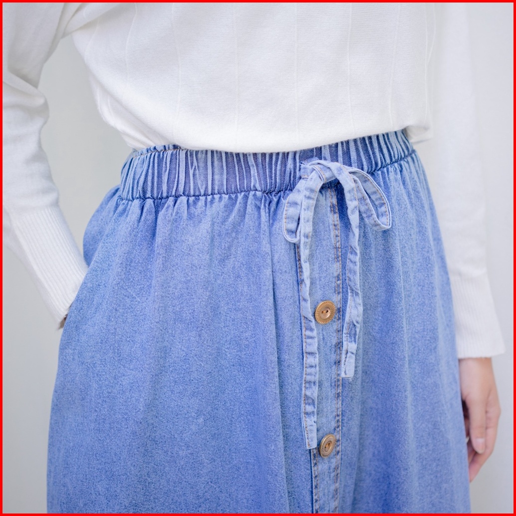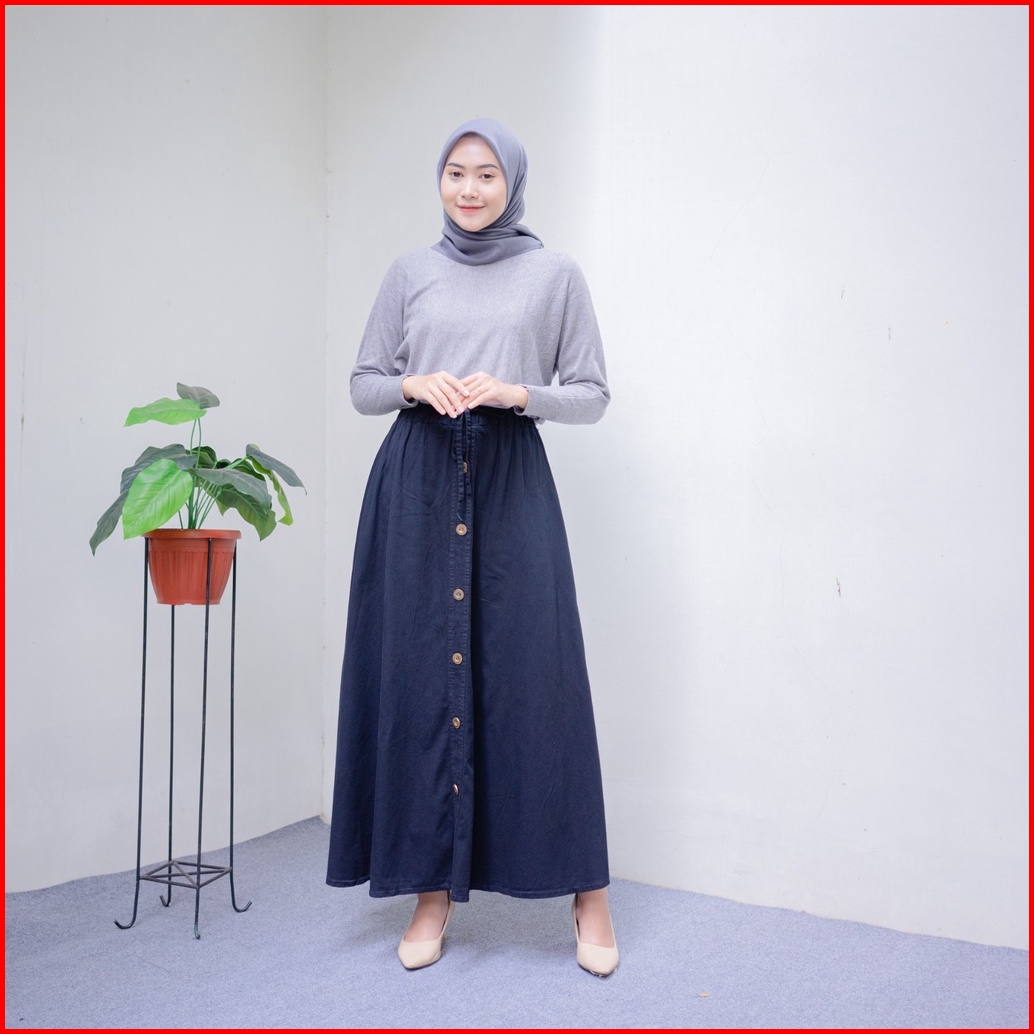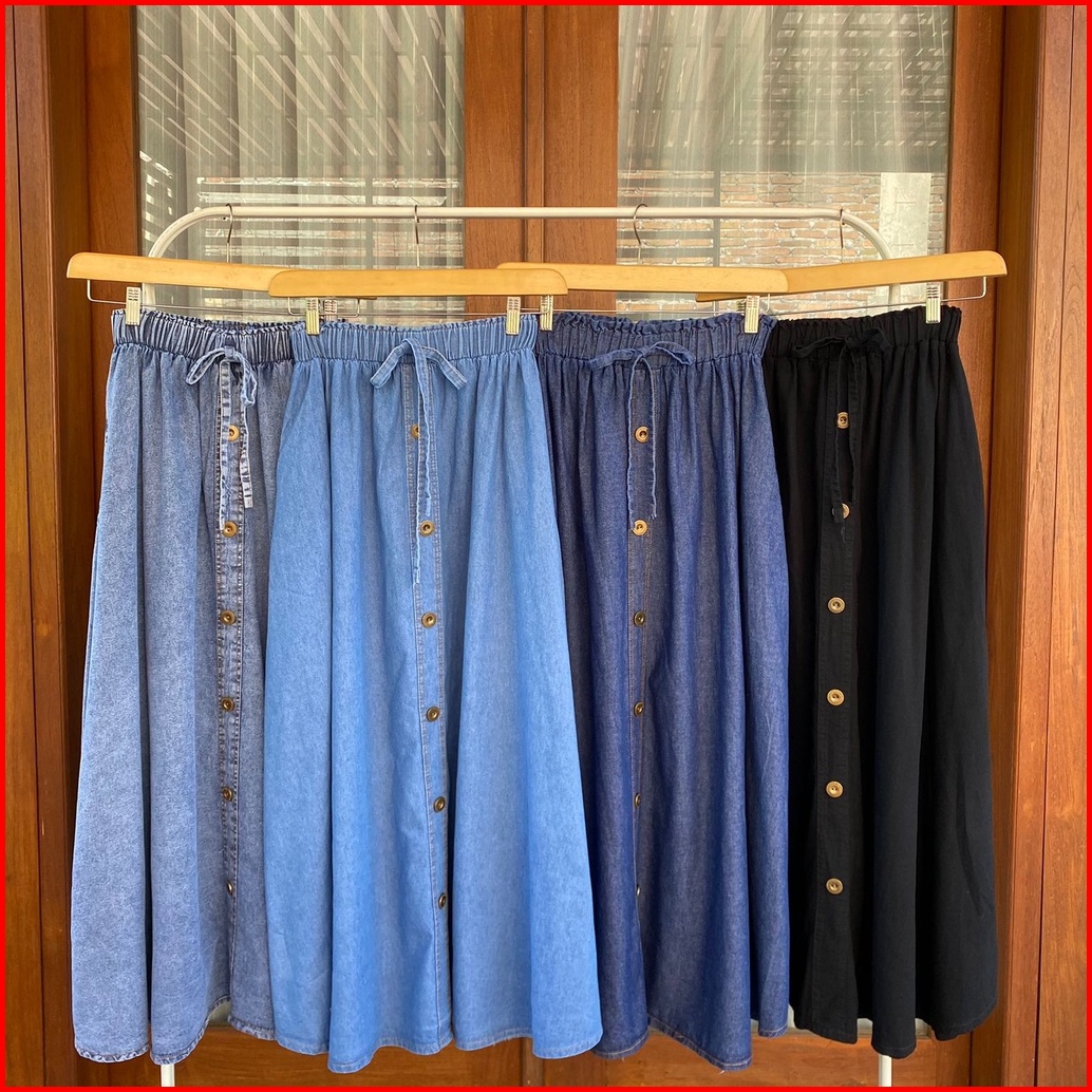 Rok Jeans Denim Skirt Levis Polos Payung Mayung Kanting Lebar Panjang Wanita Jumbo Karet Premium Xxl