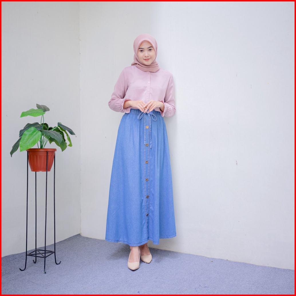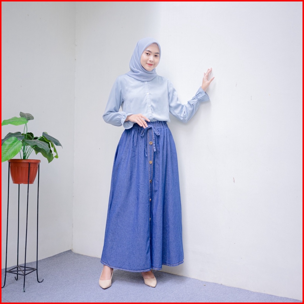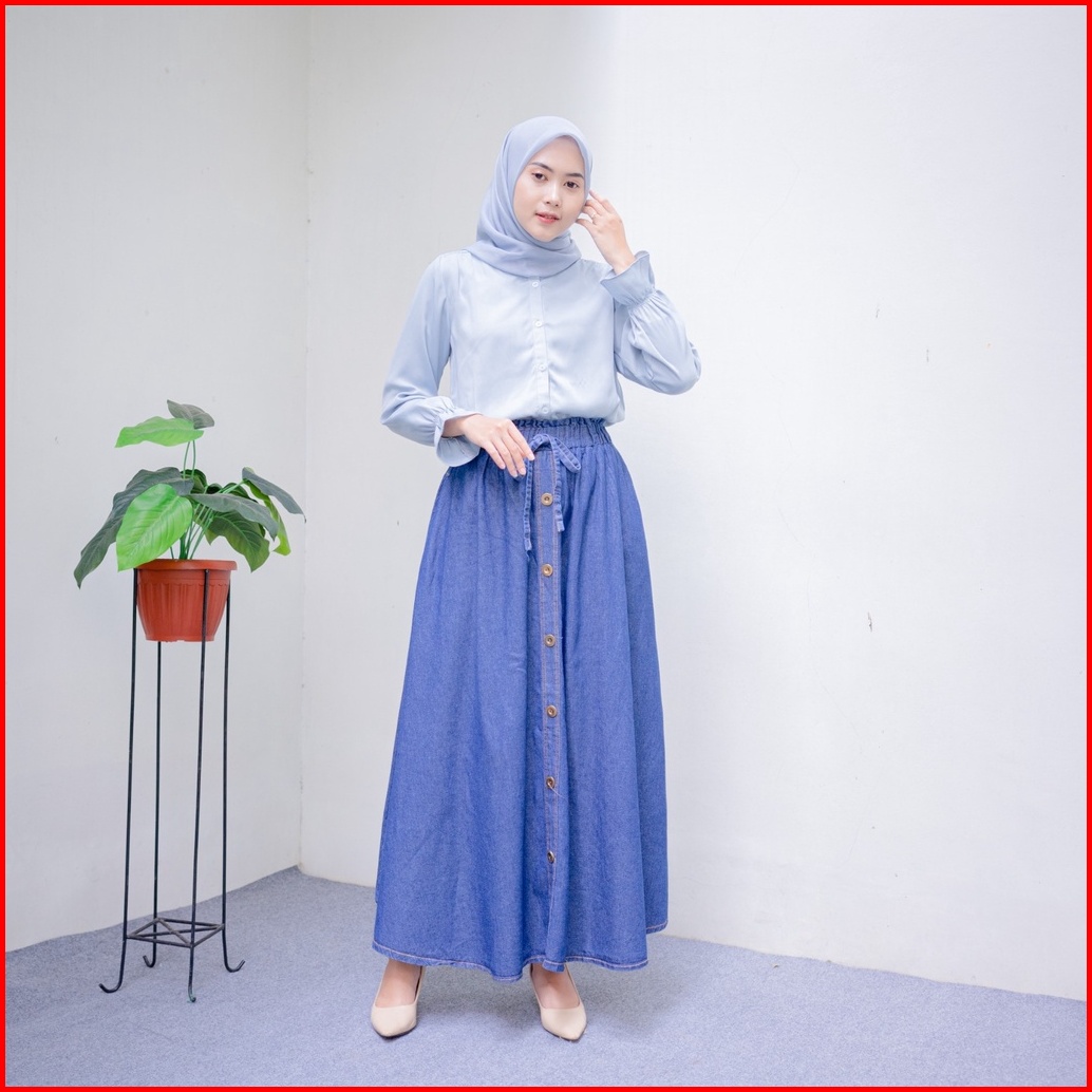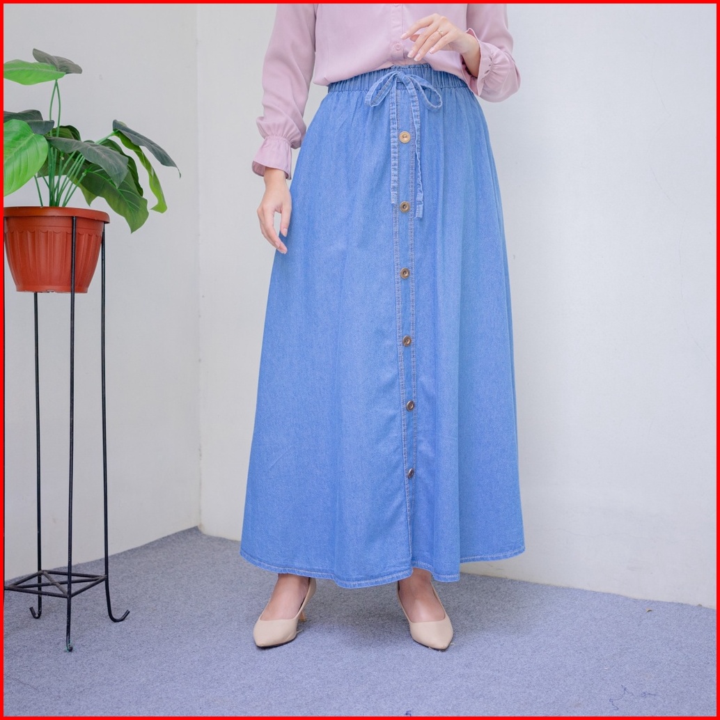 Rok Jeans Denim Skirt Levis Polos Payung Mayung Kanting Lebar Panjang Wanita Jumbo Karet Premium Xxl