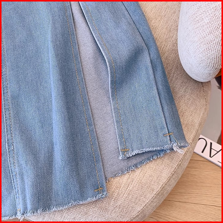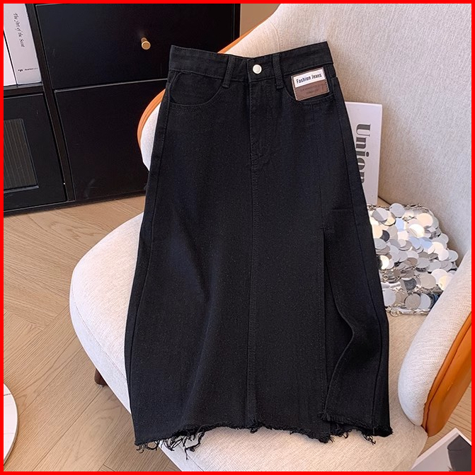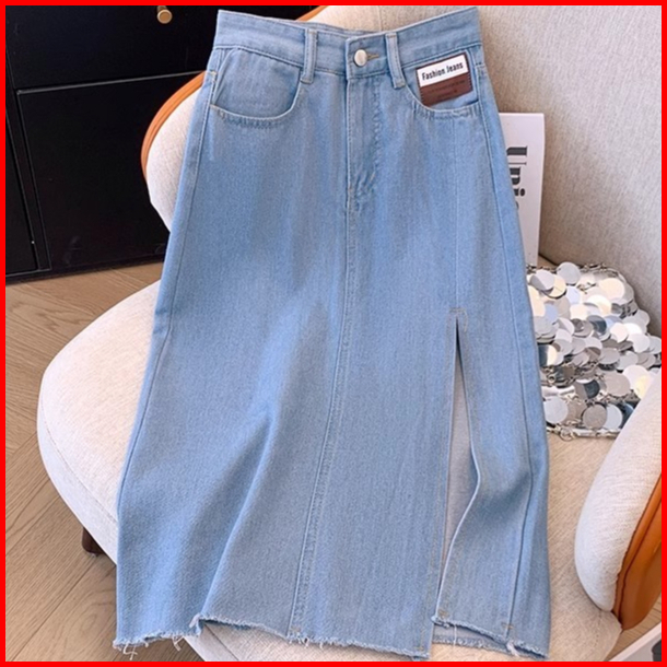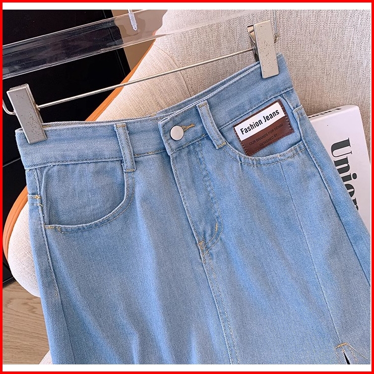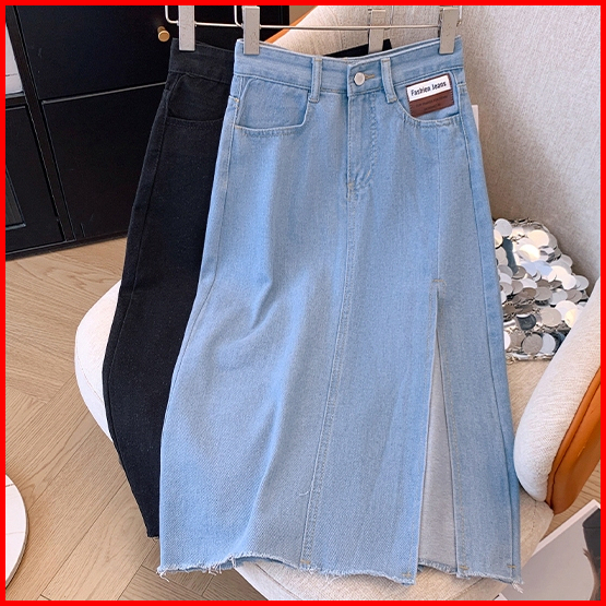 Boll.idrok Jeans Jumbo Rok Korean Style Rok Jeans Wanita Panjang Highwaist Rok Belah Samping Denim A Line Rok Wanita Kek