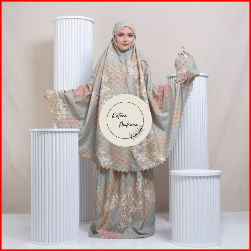 Mukena Traveling 2in1 Lasercut Resleting Motif Katun Premium Tas Mutiara Cantik