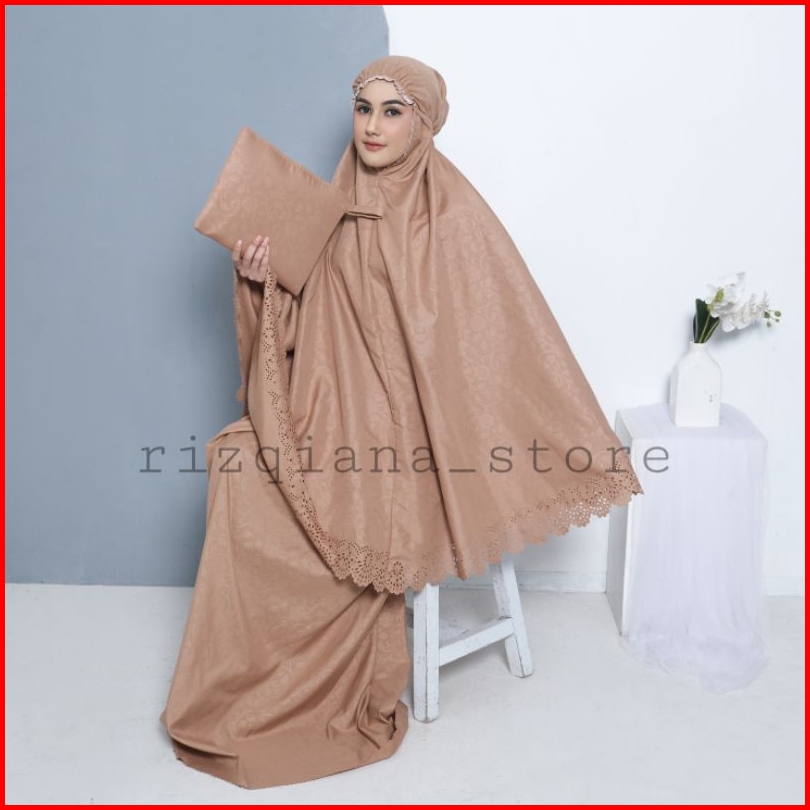 Rizqiana Store - Mukena Laser Cut Dewasa Traveling Plong Motif Bunga