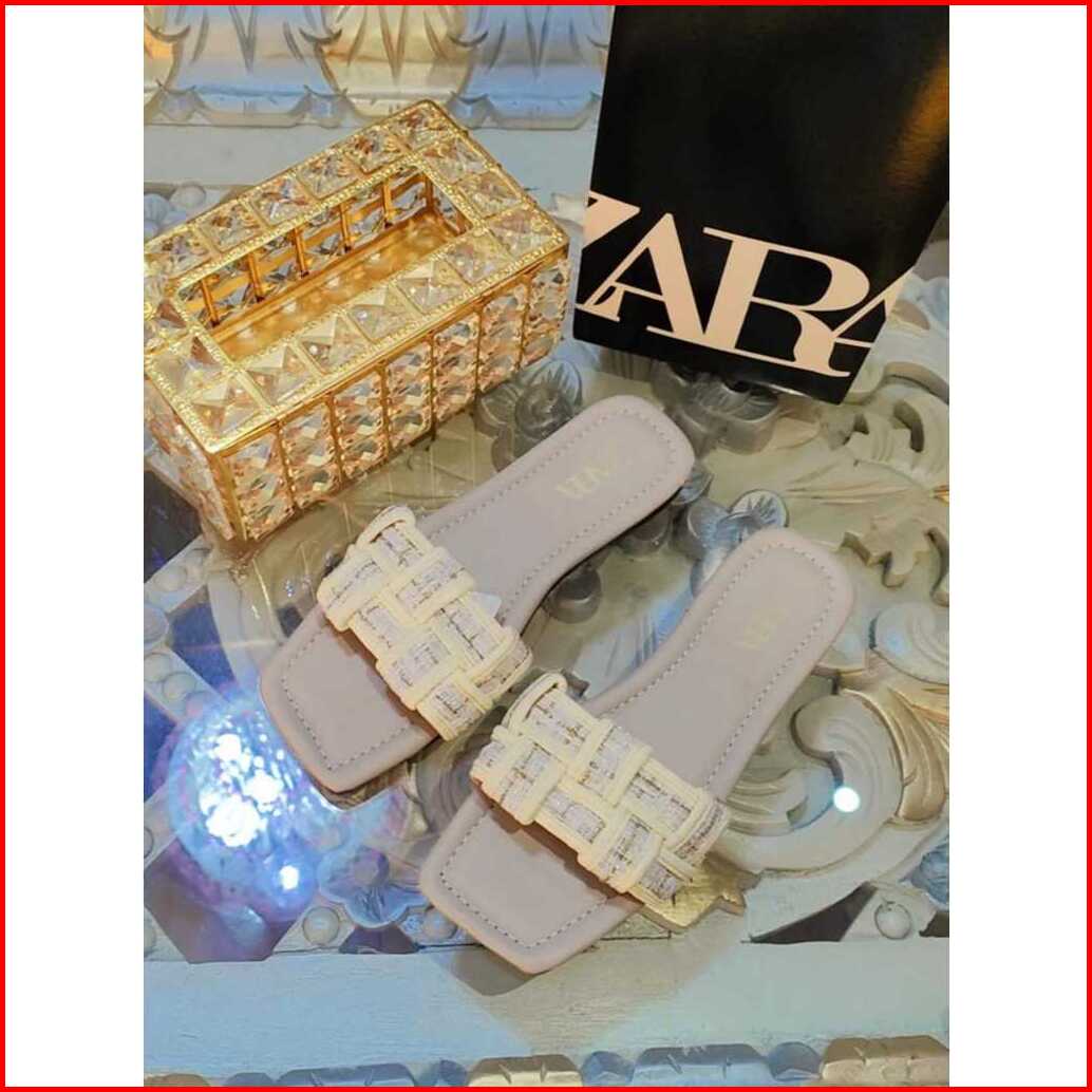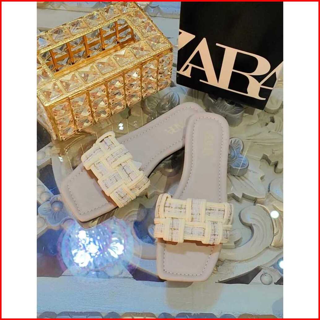 Sandal Selop Zara Flat Ketupat Bahan Rajut Tweet Korean Style Kekinian Kode B2a New