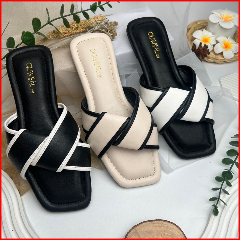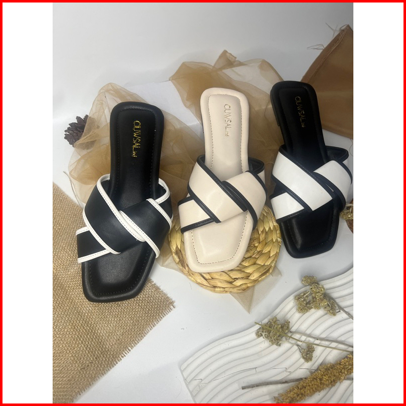 Ciuwsal Ys Crem Sendal Wanita Sandal Wanita Teplek Flat Dewasa Rumahan Santai Sandal Wanita Sandal Flat Sandal Sandal Te