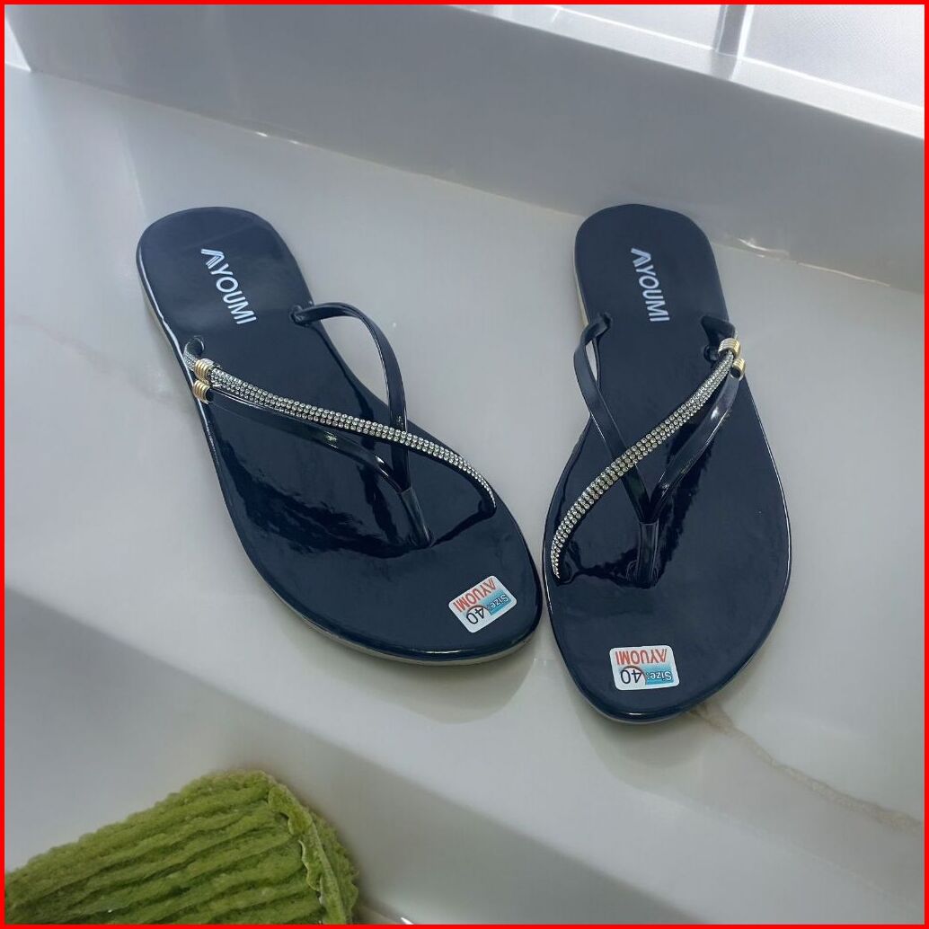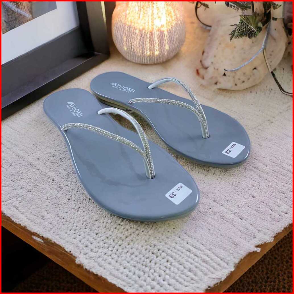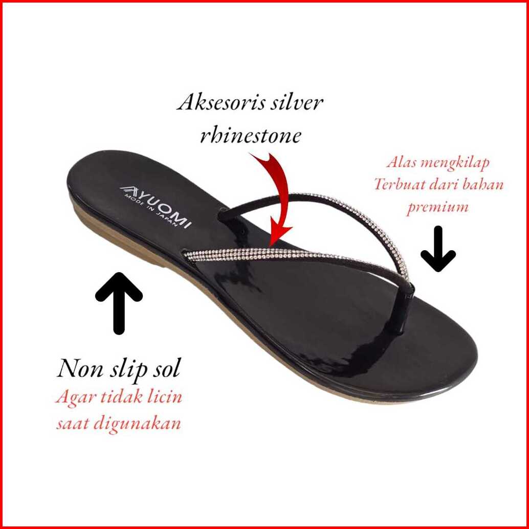 Yuomi Sandal Santai Wanita Teplek Jepit Terbaru Blink Kristal Kekinian