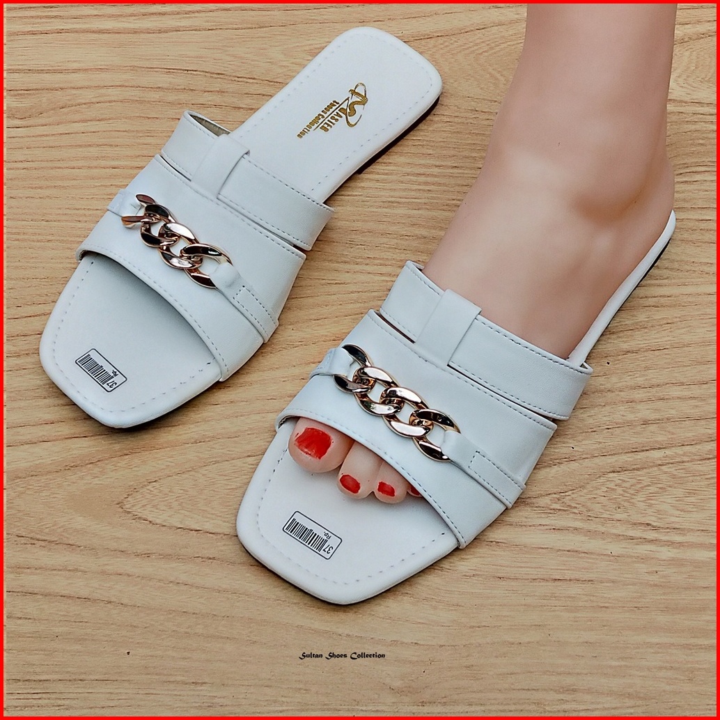 Big Sale 11.11 Sandal Teplek Slop Kokop Wanita Flat Rantai Kekinian Terbaru Sendal Selop Slip On Perempuan Cewek Variasi