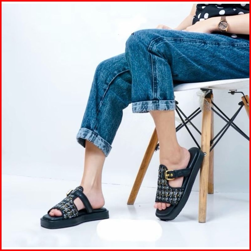 Sandal Tali Platform Wanita Sendal Korean Style Sandal Motif Rajut