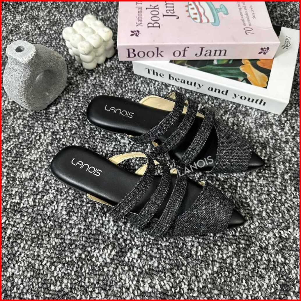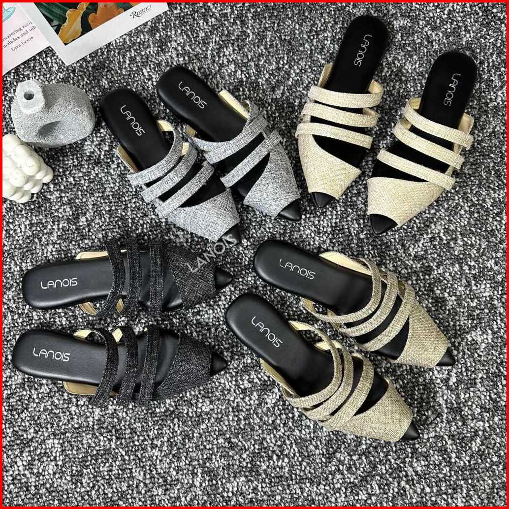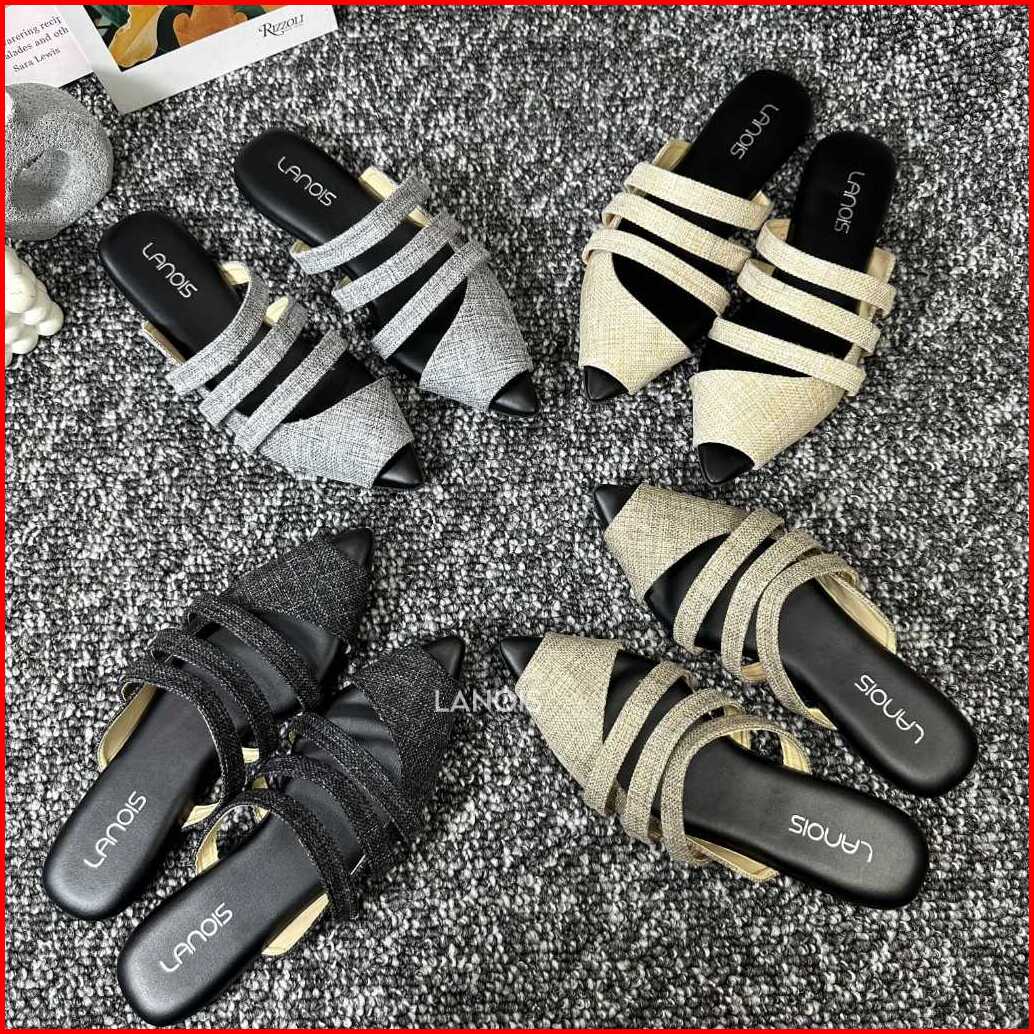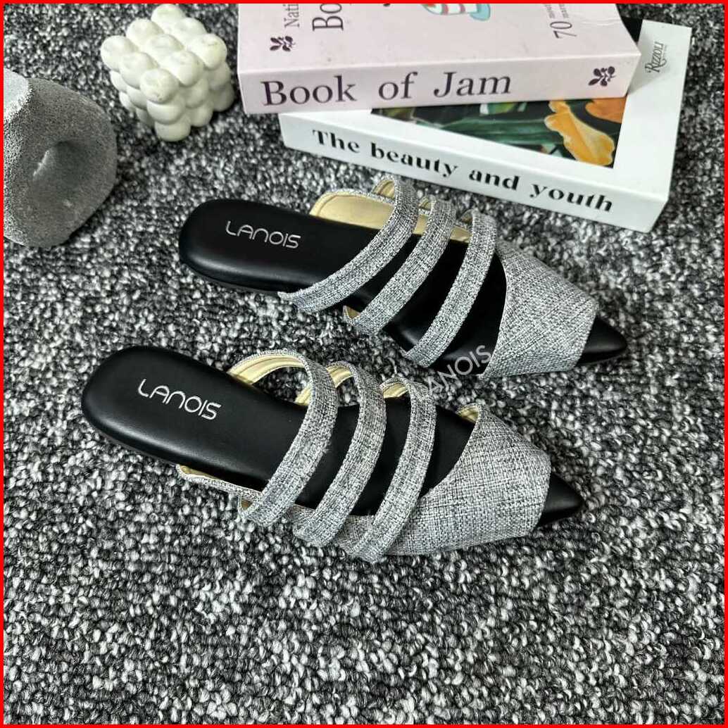 Lanois Sandal Wanita Mules Raisa Flatshoes Slip On Terbaru Sendal Selop Kekinian Hak Datar 1 Cm