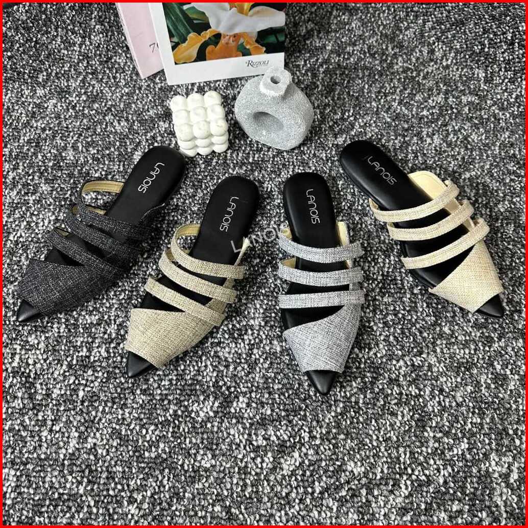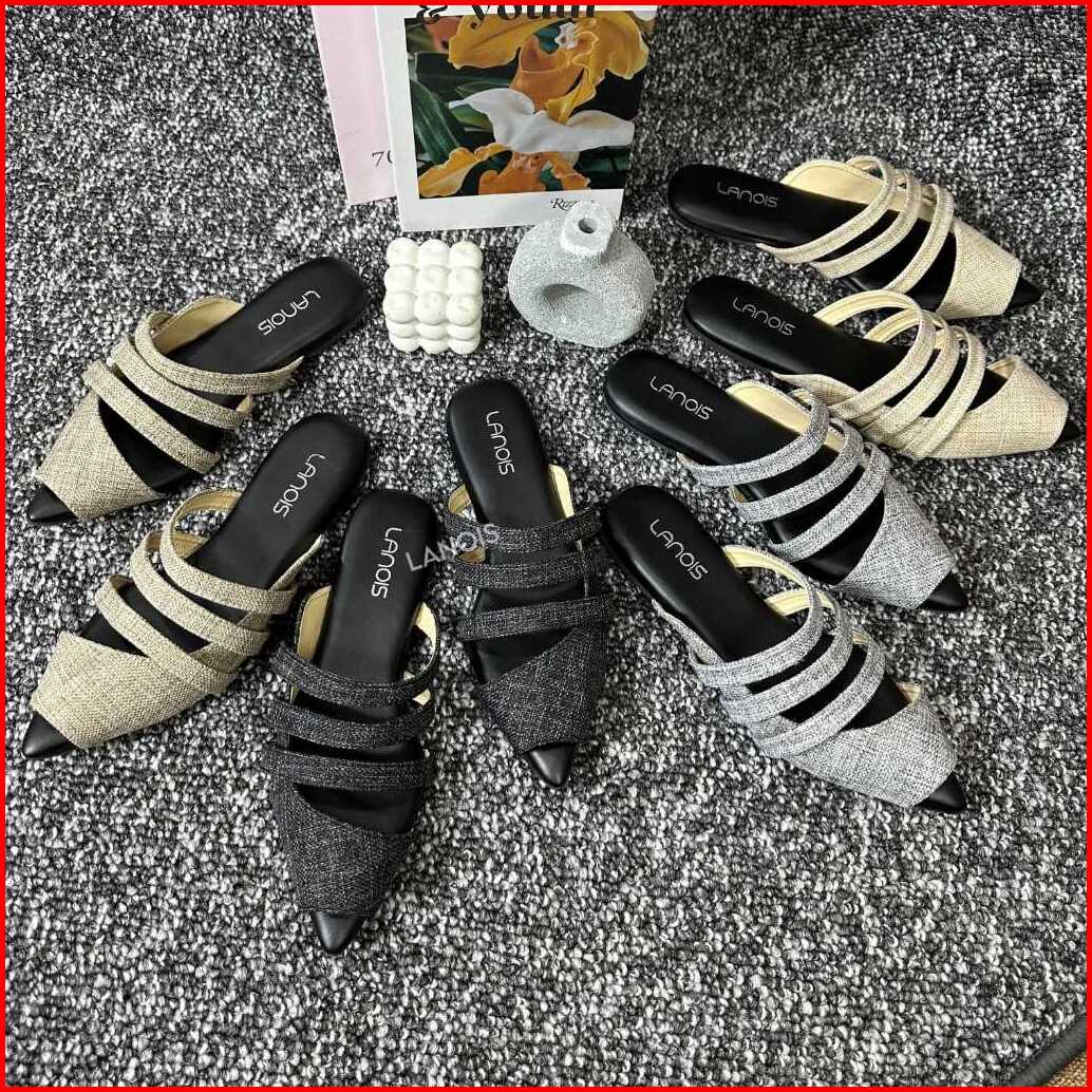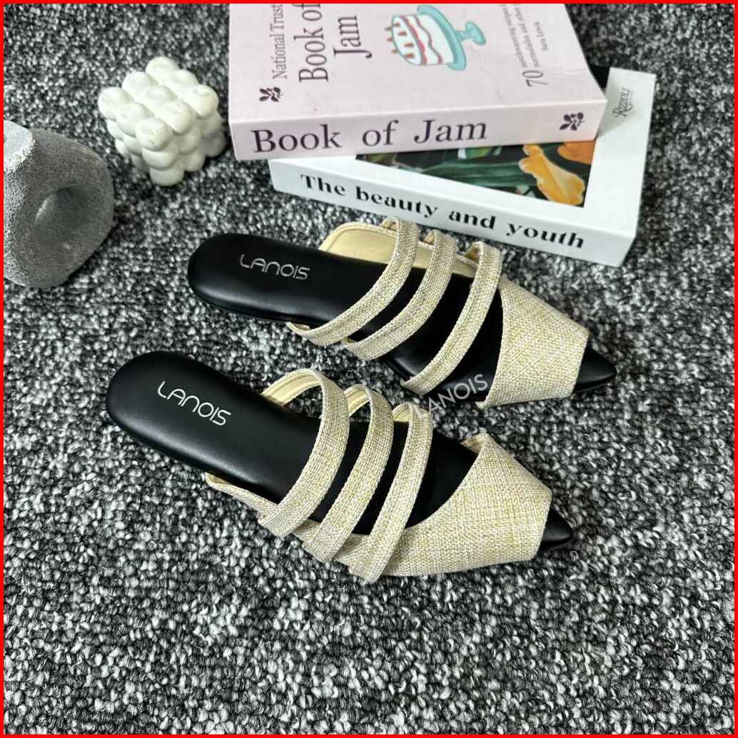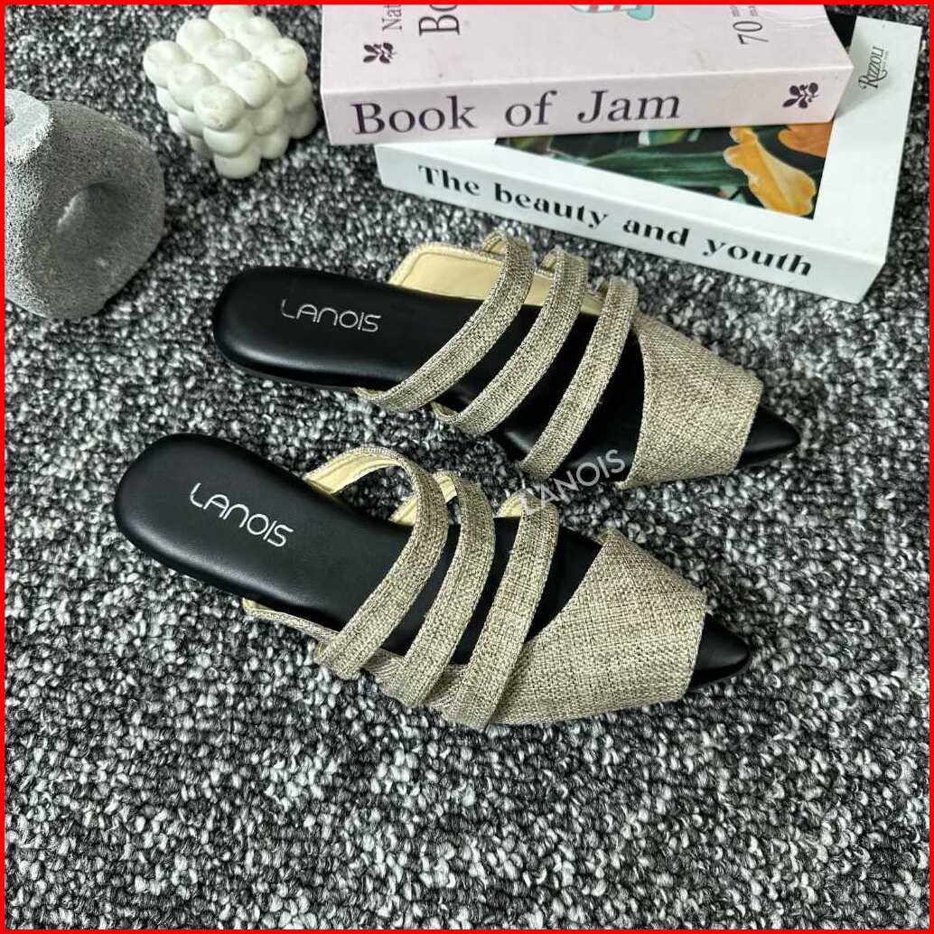 Lanois Sandal Wanita Mules Raisa Flatshoes Slip On Terbaru Sendal Selop Kekinian Hak Datar 1 Cm