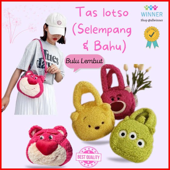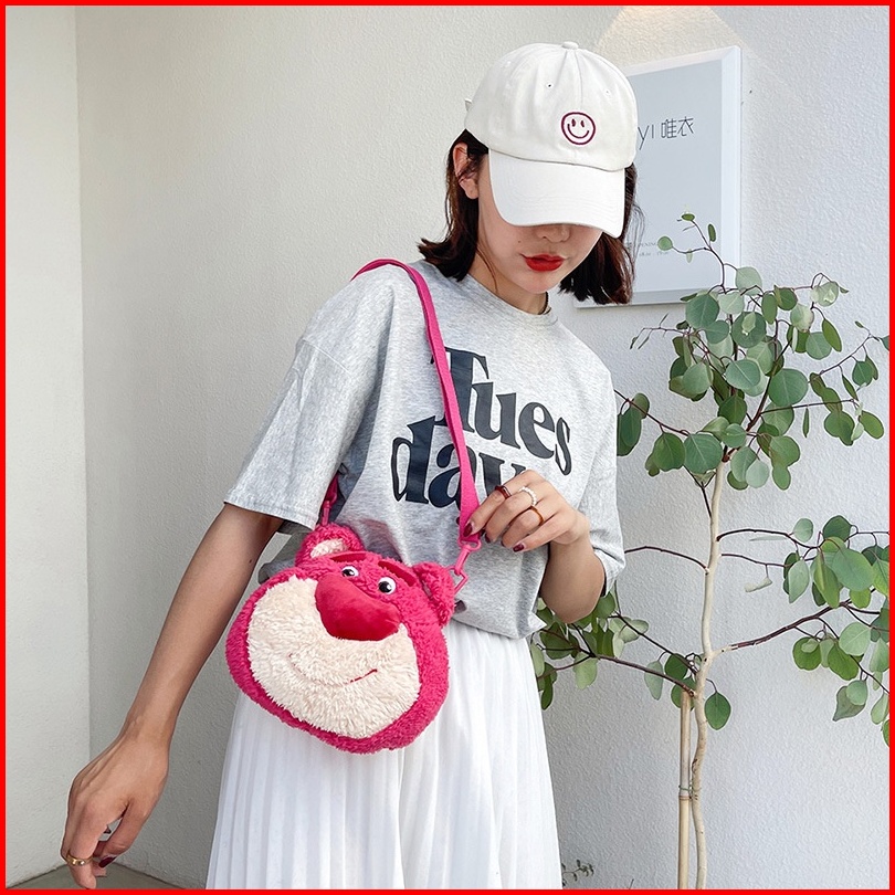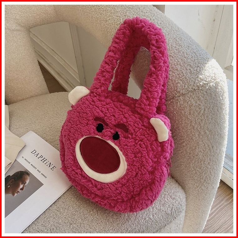 Tas Lotso Toy Story Monster Pooh Boneka Karakter Three Eye Monster Strawberry Bear Lotso Gemoy Bahan Bulu Halus Lucu Imu