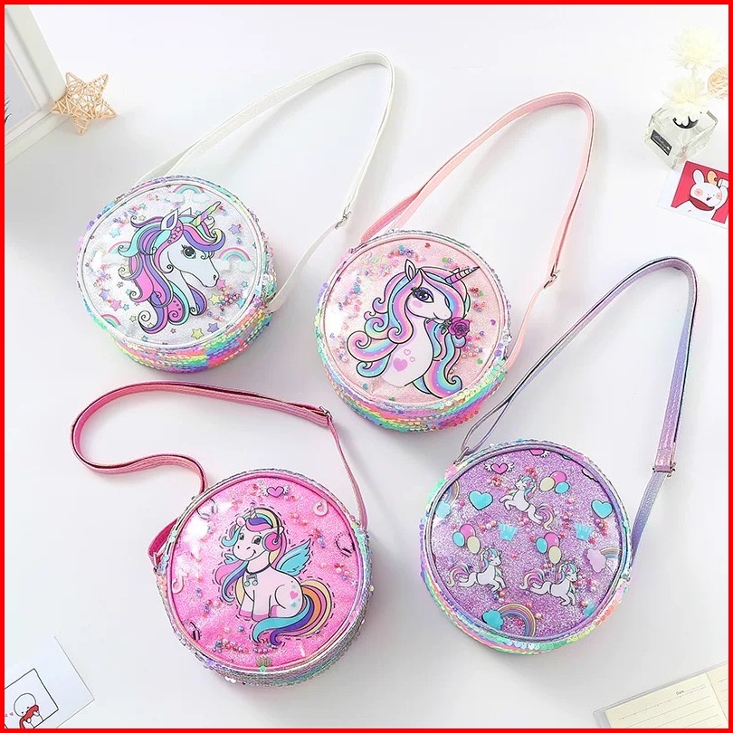 Tas Selempang Unicorn Bulat Tas Selempang Anak Perempuan