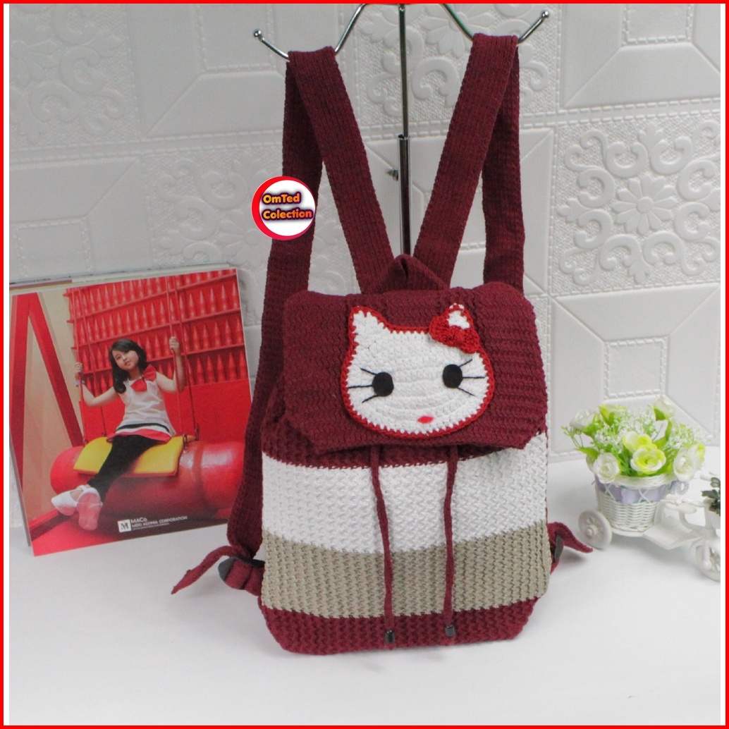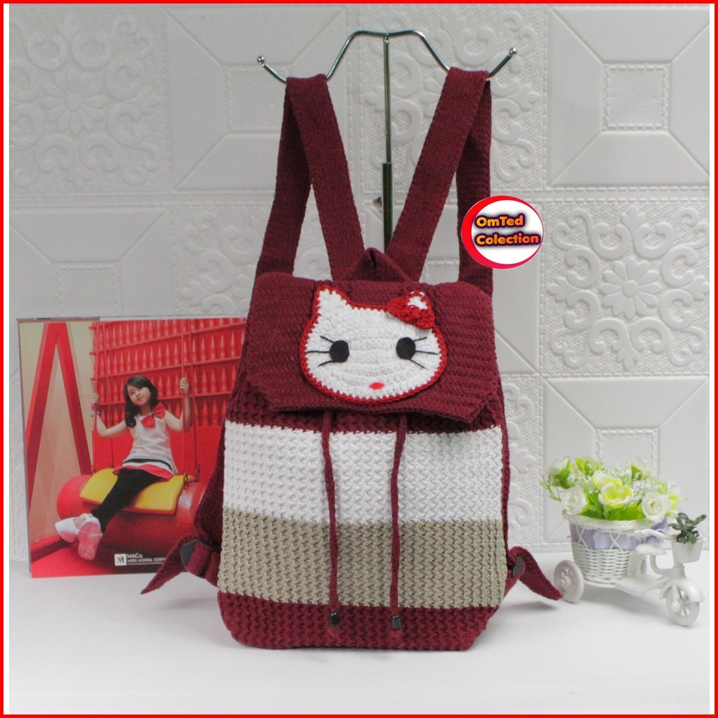 Tas Anak Perempuan - Gendong Rajut Karakter Hello Kitty Atas Lucu Bahan Tebal Banyak Pilihan Warna