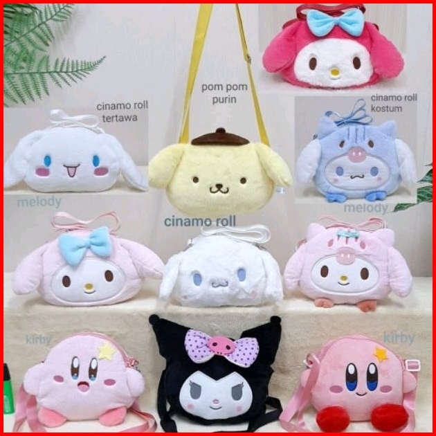 Tas Bulu Tas Selempang Melody Kuromi Cinnamon Roll Anak Perempuan Sling Bag Karakter Boneka Animal Lucu