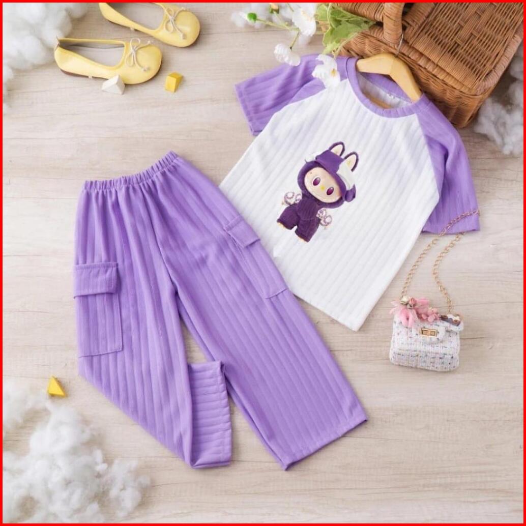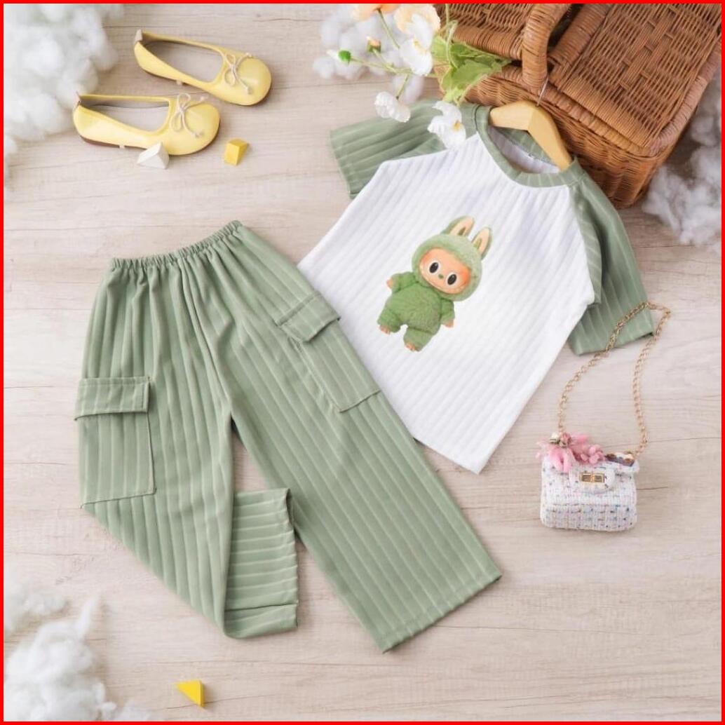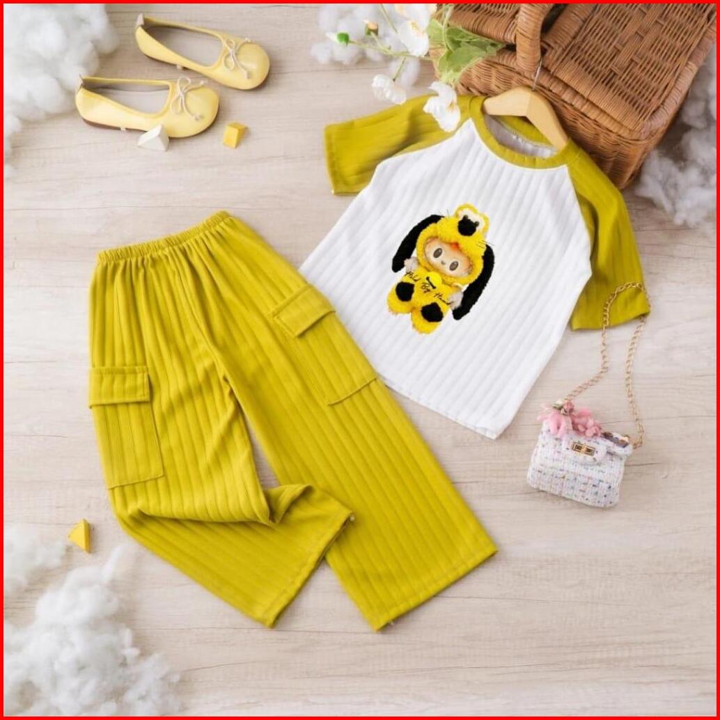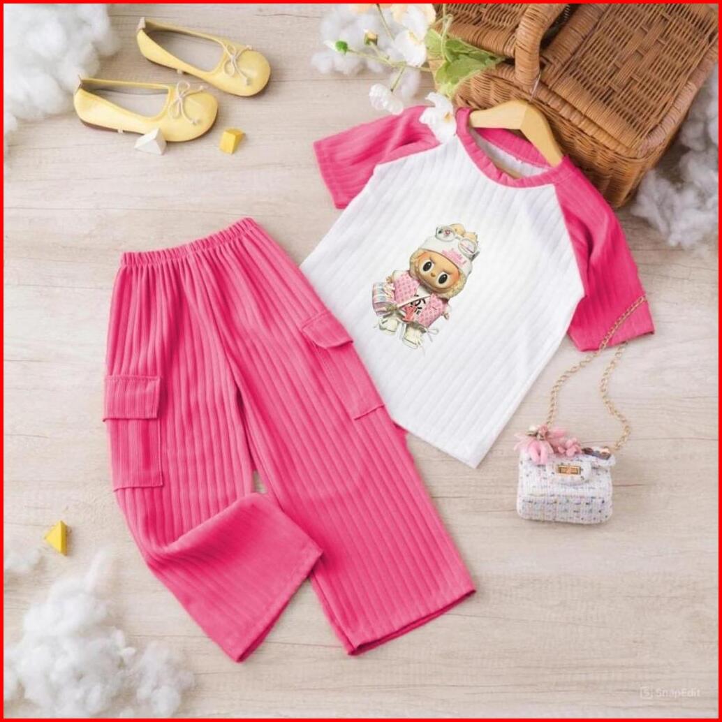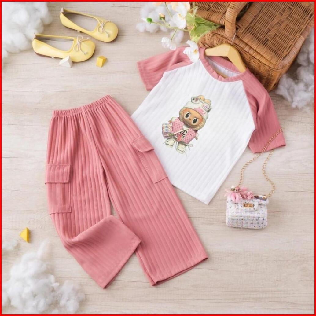 Oneset Setelan Cargo Knit Labu Anak Perempuan 1-10 Th