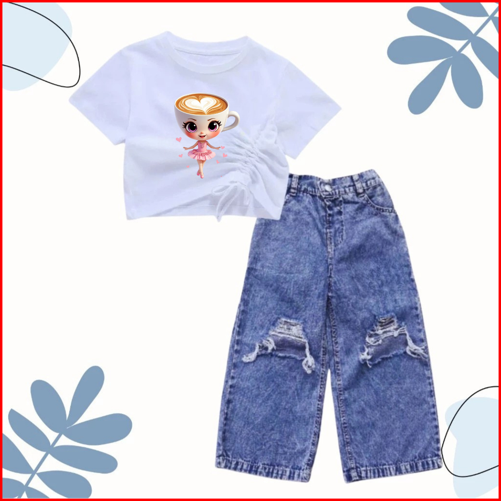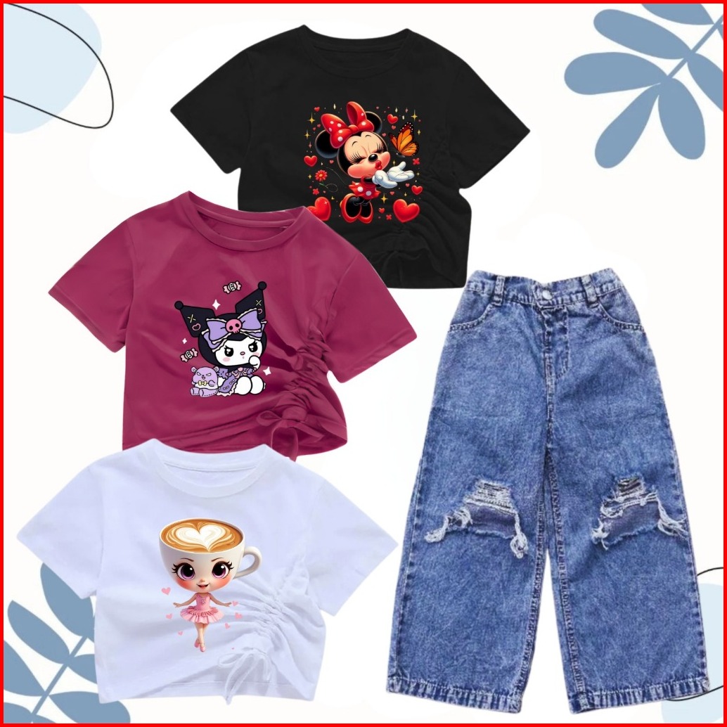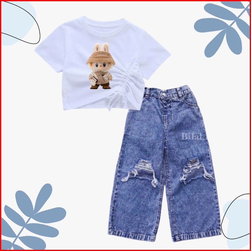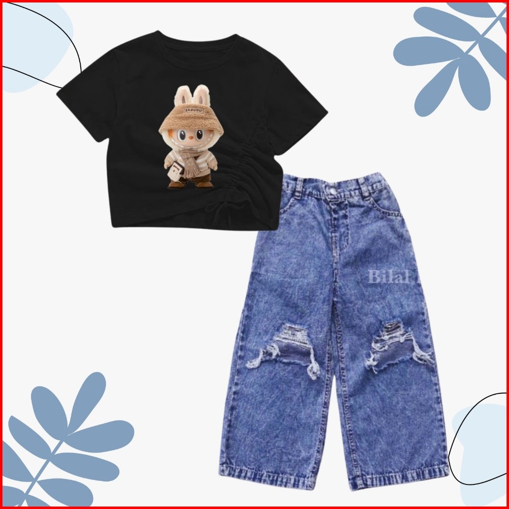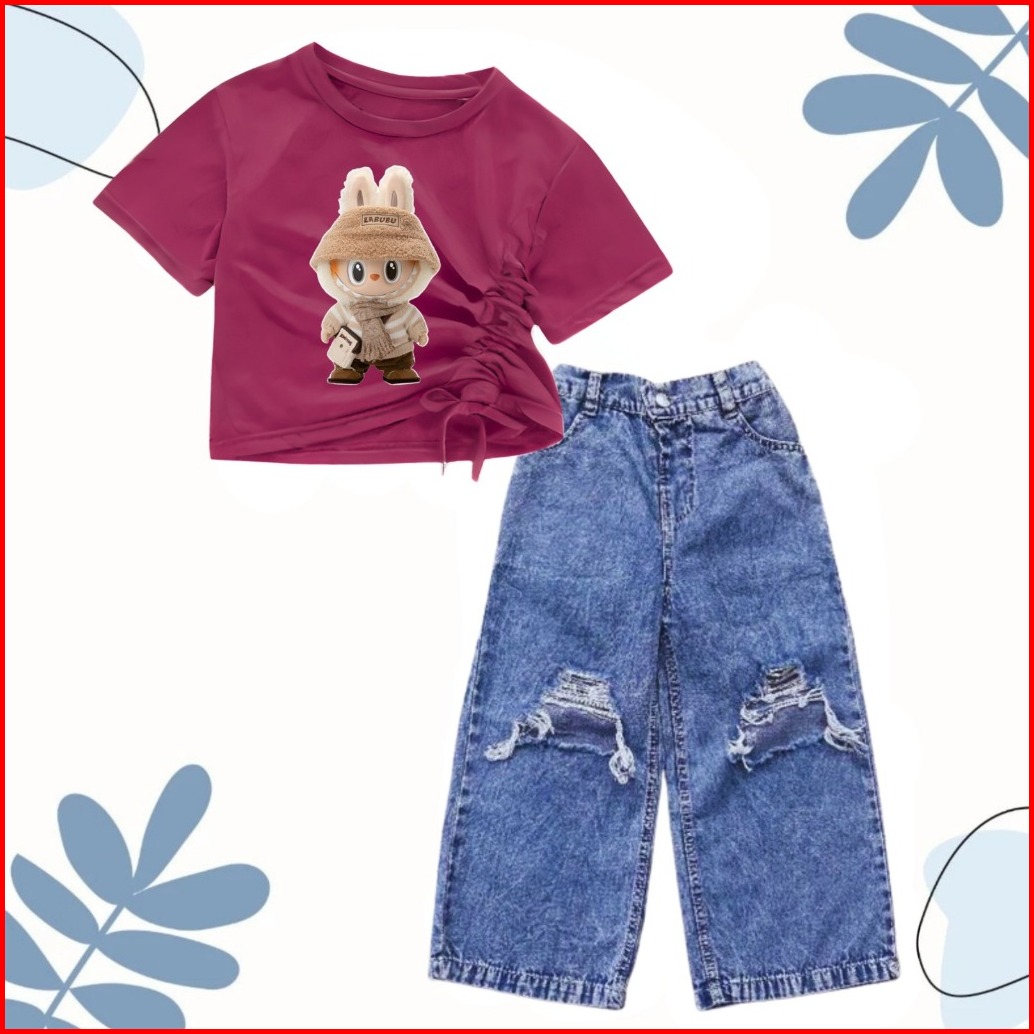Setelan Croptop Dan Kulot Jeans Sobek Anak Usia 1-10 Tahun