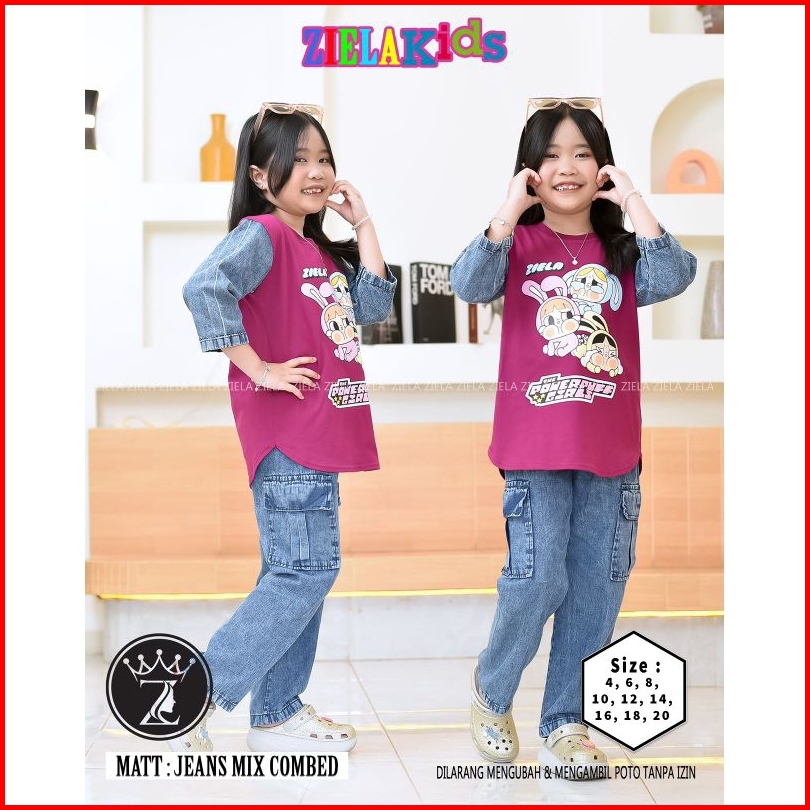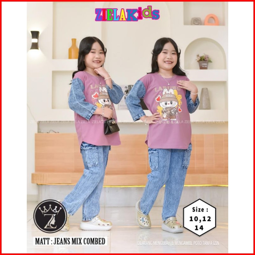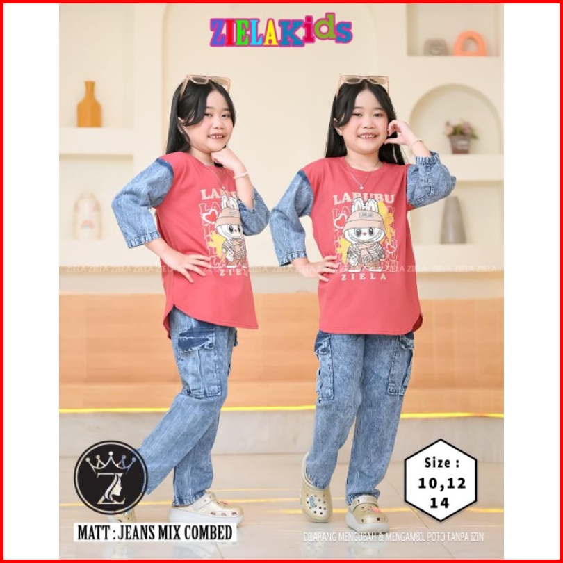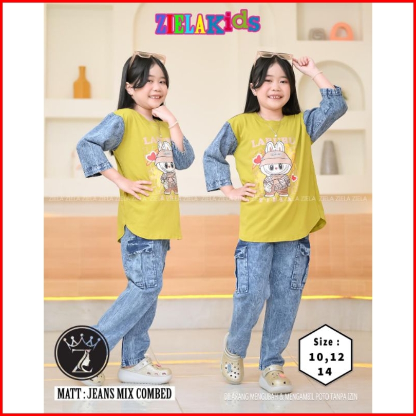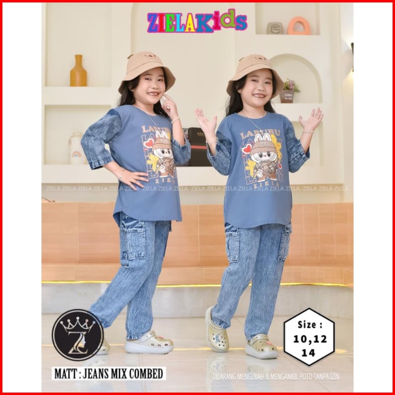 One Set Cargo Labubu Ory Ziela Set Celana Levis Labubu Setelan Anak Gambar Karakter