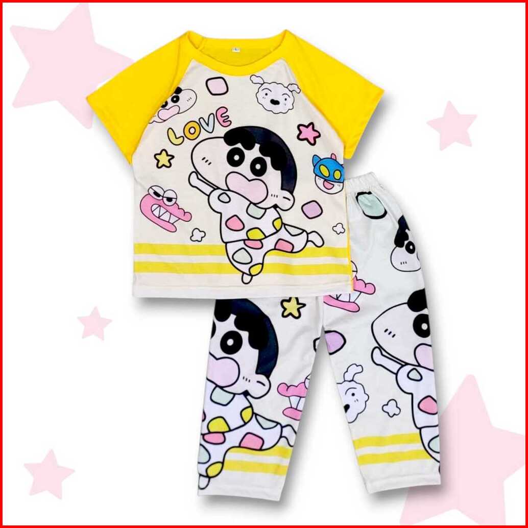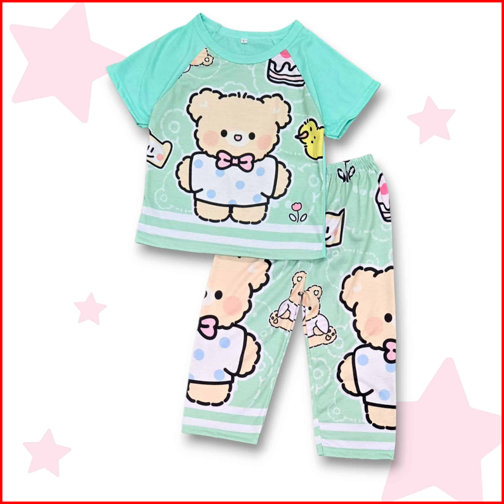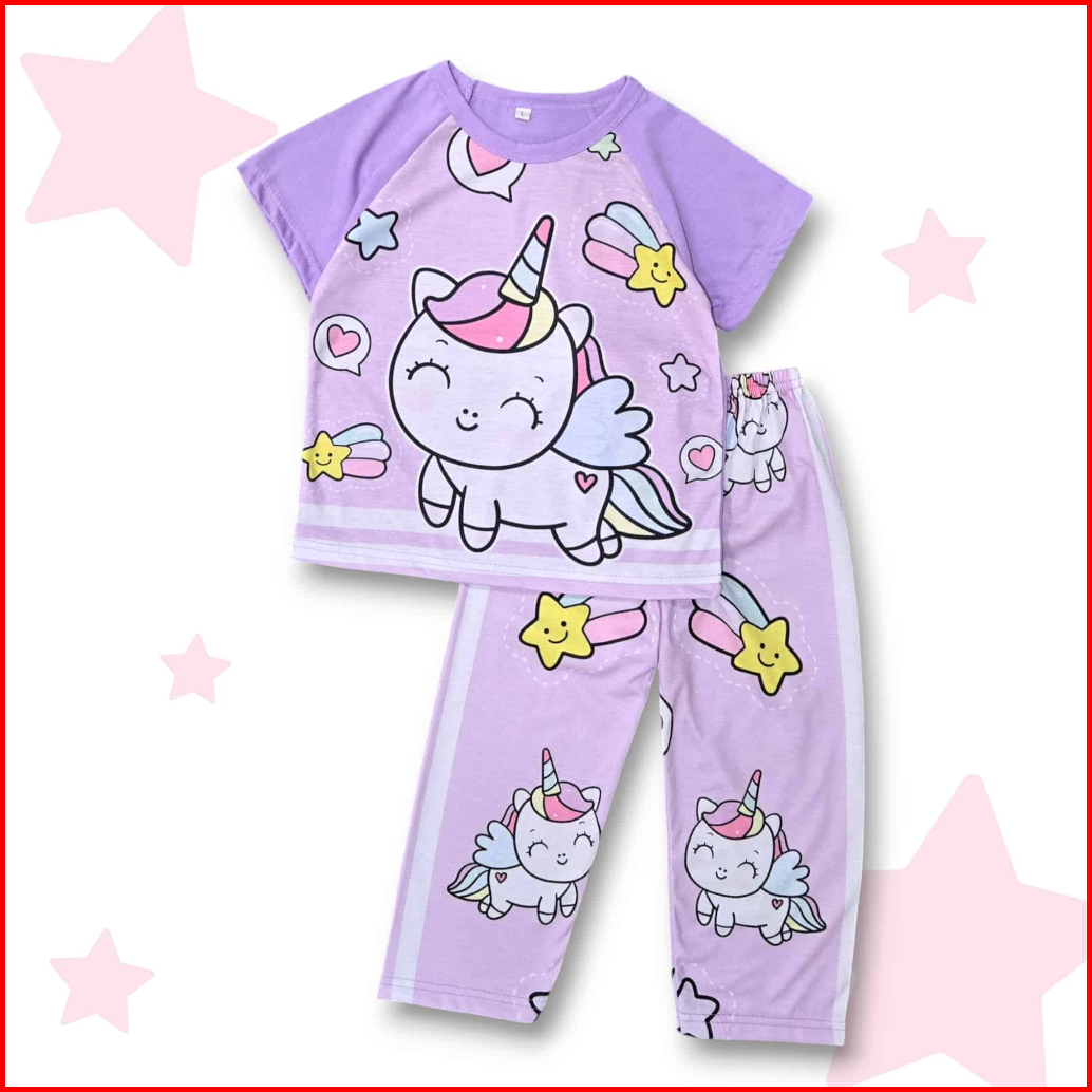 Setelan Baju Tidur Anak Perempuan Lengan Pendek Celana Panjang