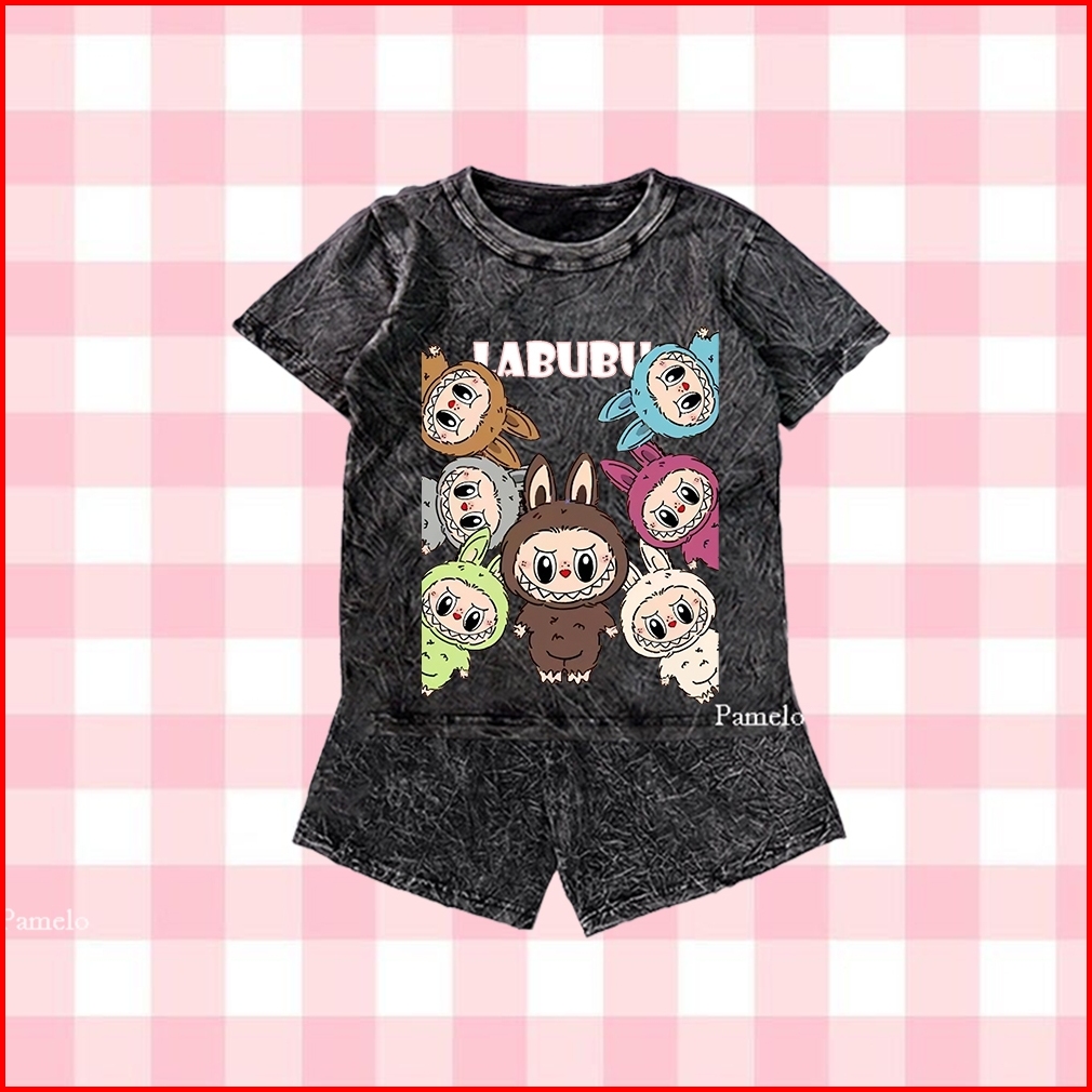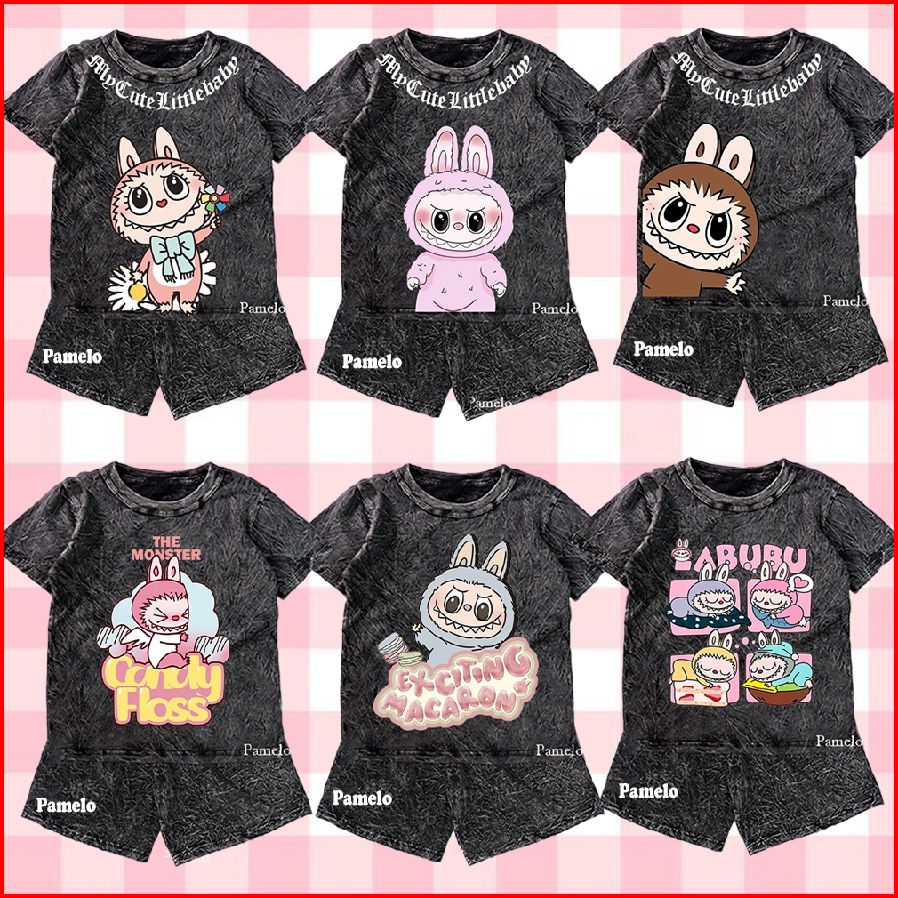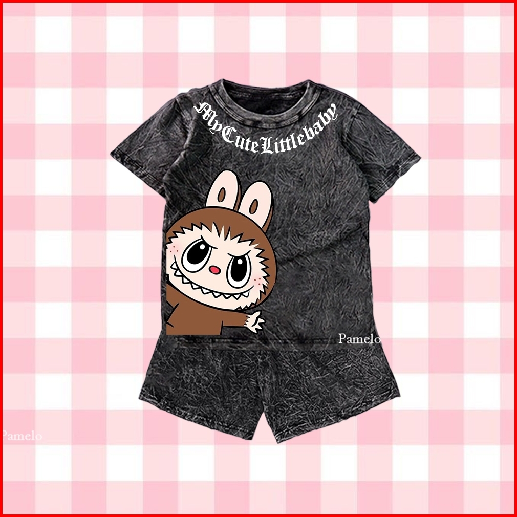 Pamelo Stelan Wash Anak Unisex Labubu Wash One Set Anak Stone Wash Polos Anak Set Distro Basic Anak Pria Dan Wanita Set
