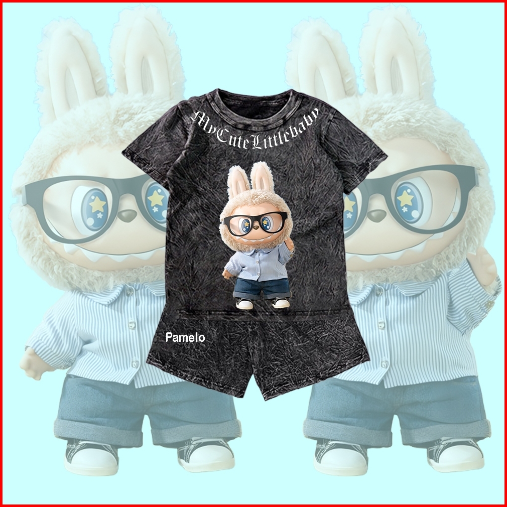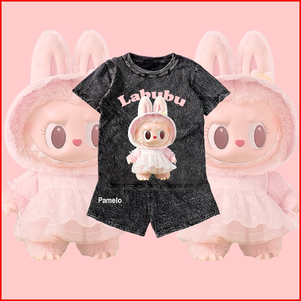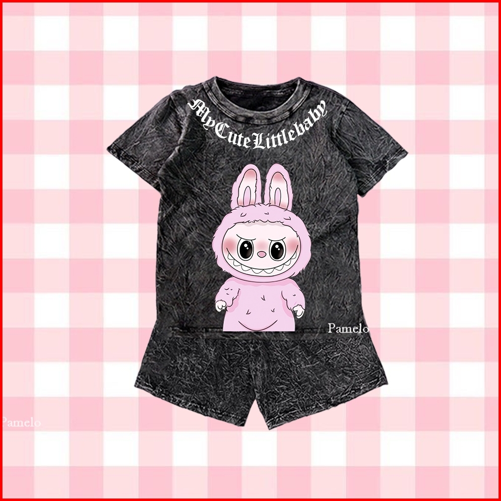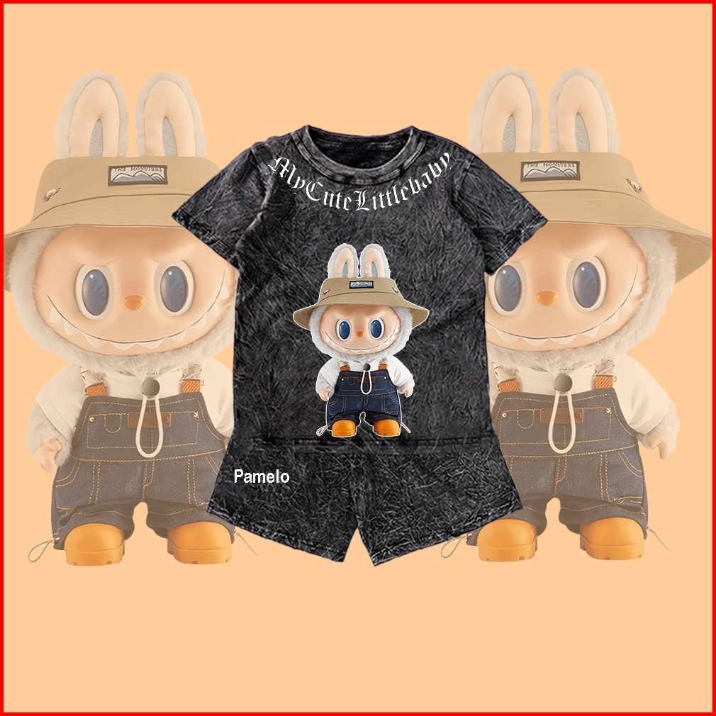Pamelo Stelan Wash Anak Unisex Labubu Wash One Set Anak Stone Wash Polos Anak Set Distro Basic Anak Pria Dan Wanita Set
