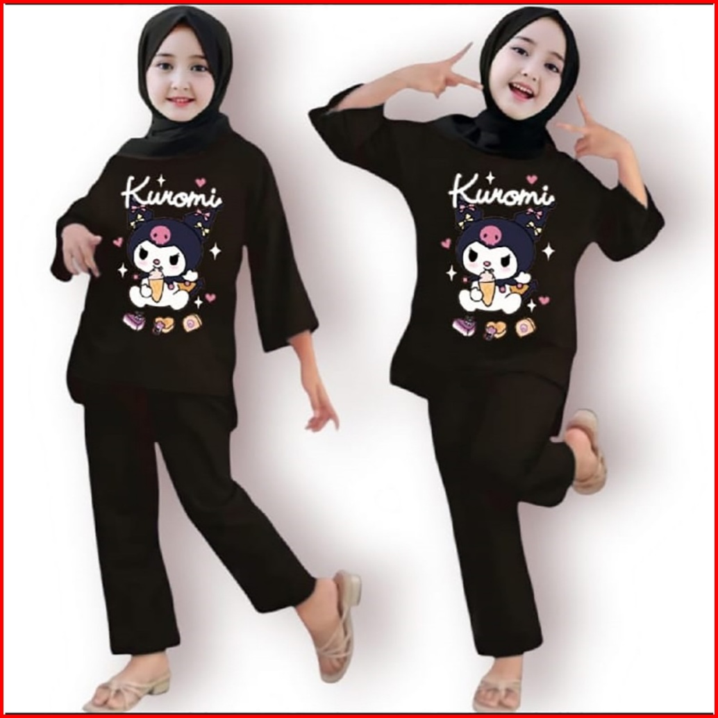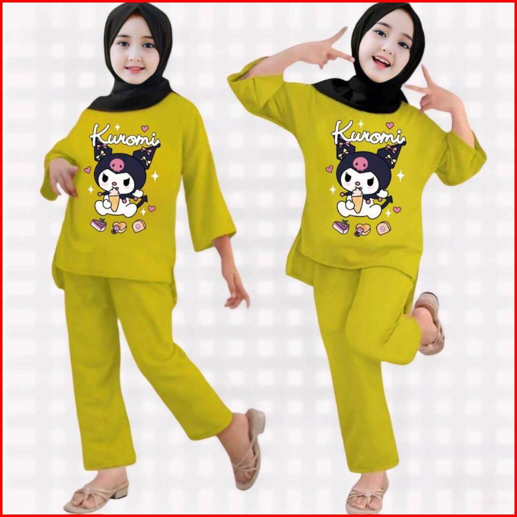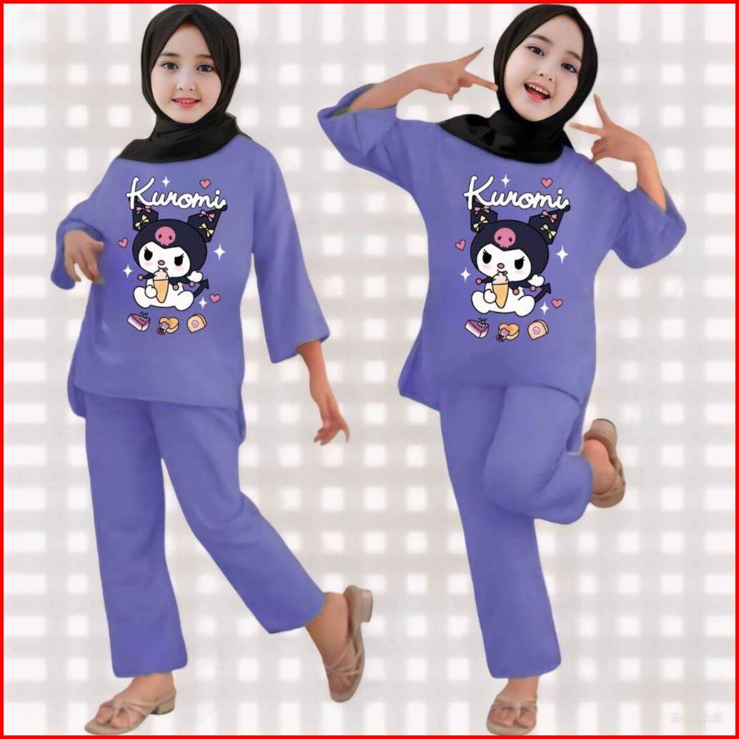Setelan Anak Tanggung Perempuan Kuromi Usia 3-12 Tahun Set Muslim