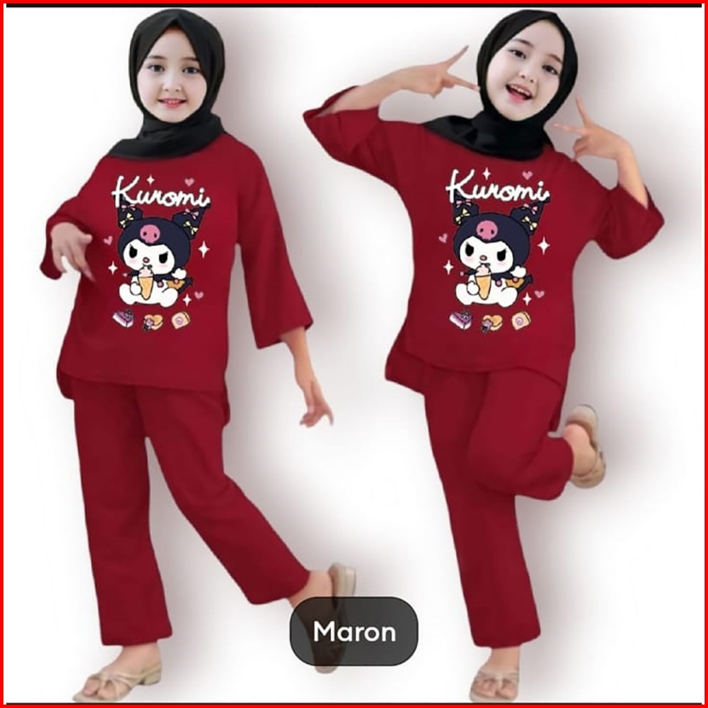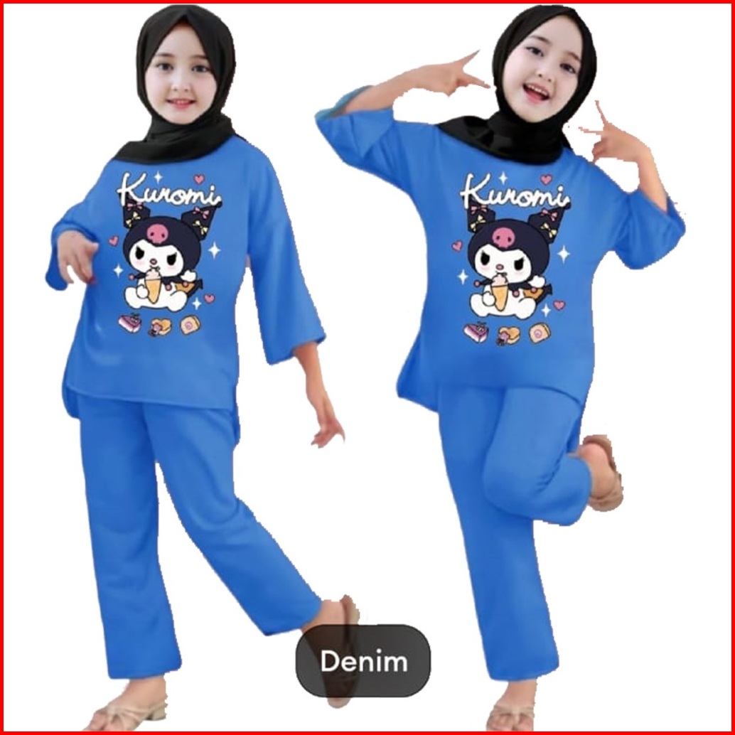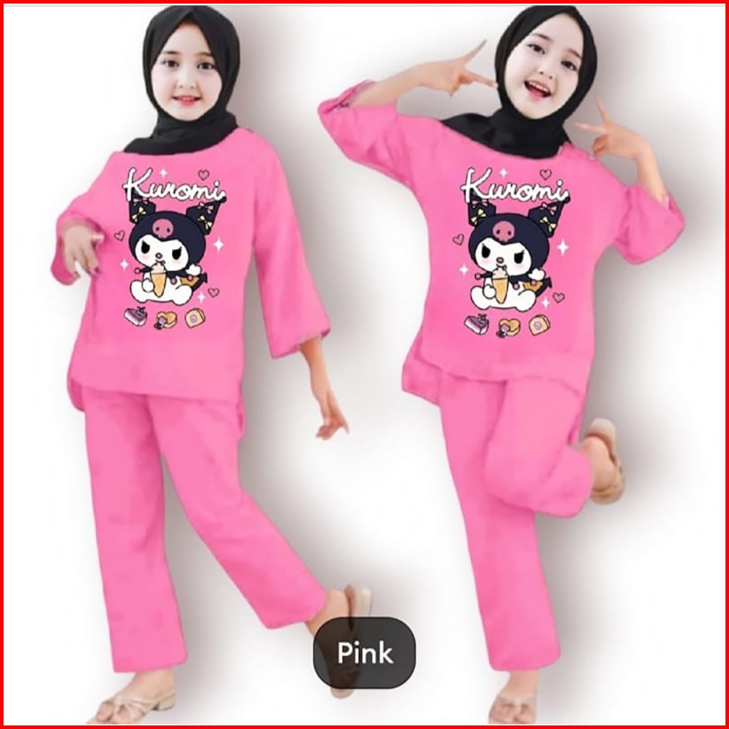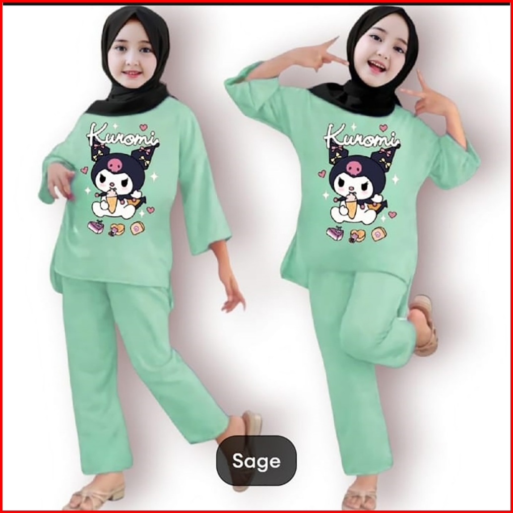 Setelan Anak Tanggung Perempuan Kuromi Usia 3-12 Tahun Set Muslim