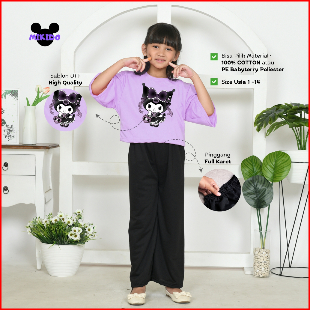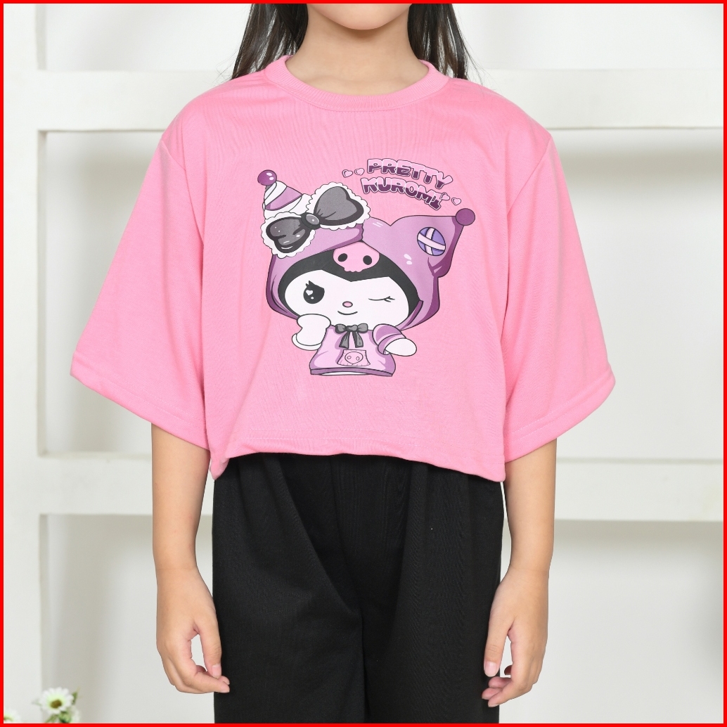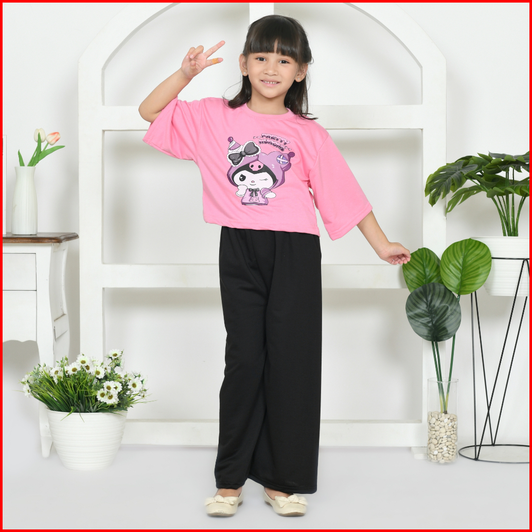 Setelan Crop Top Oversize Kulot Anak Perempuan Karakter Kuromi Cinnamoroll Lotso Stitch 6 - 14 Tahun