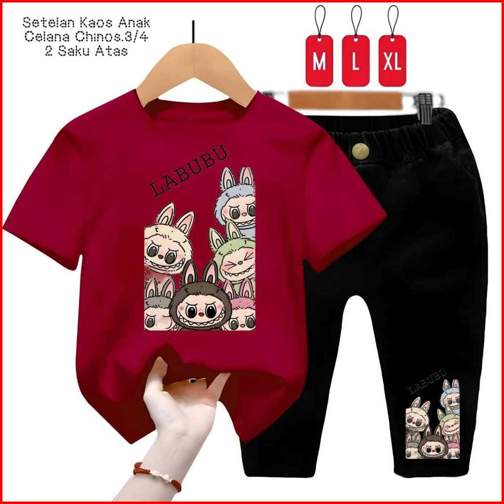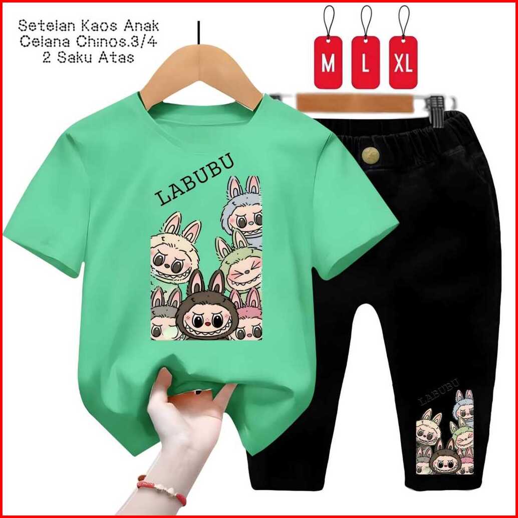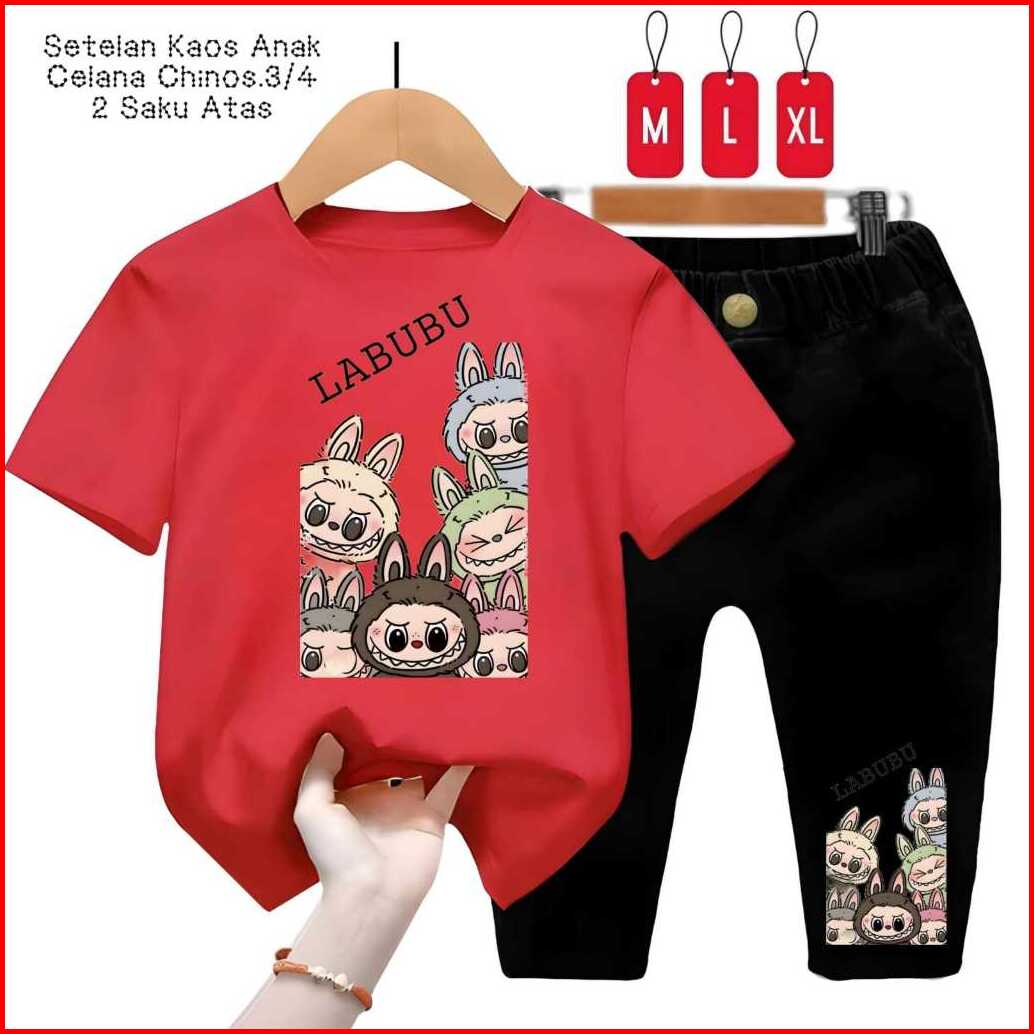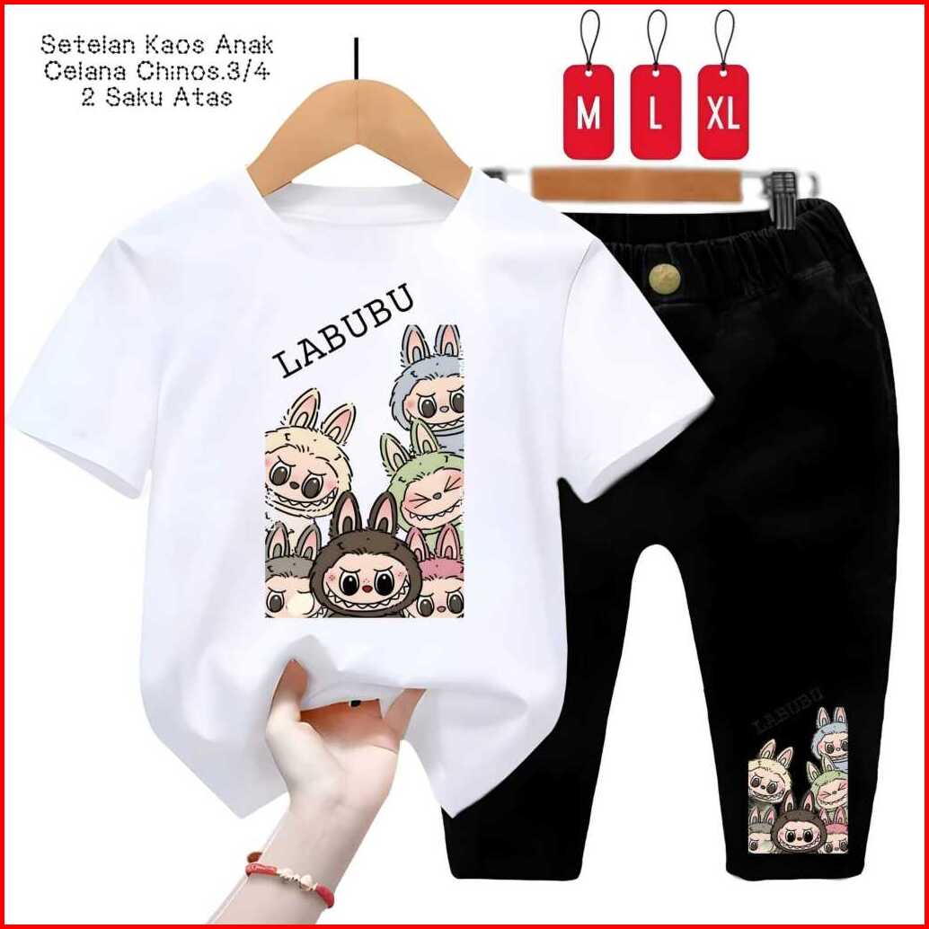 Setelan Kaos Anak Labubu Team Celana Chinos 3 4
