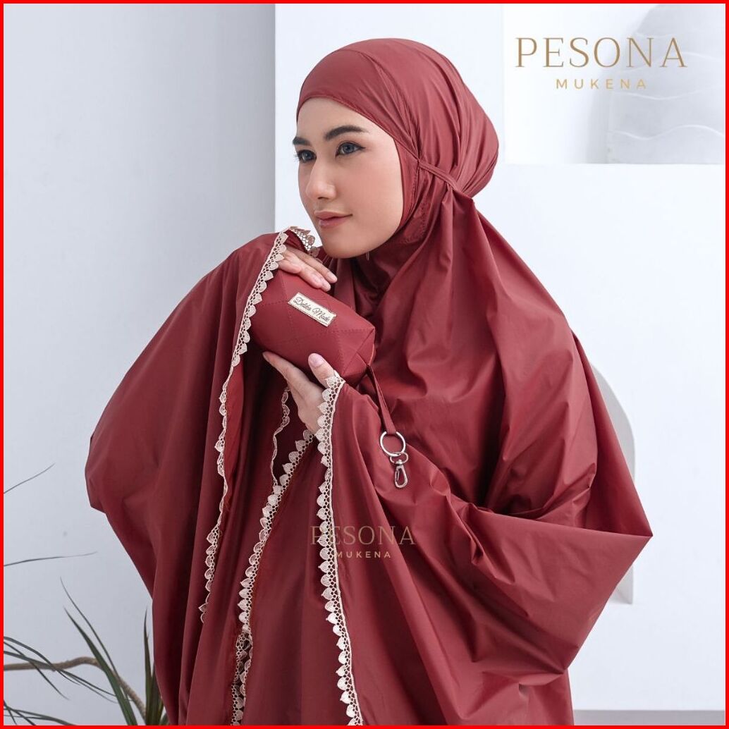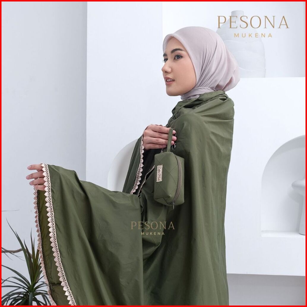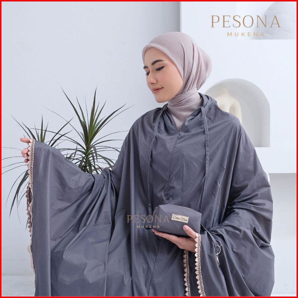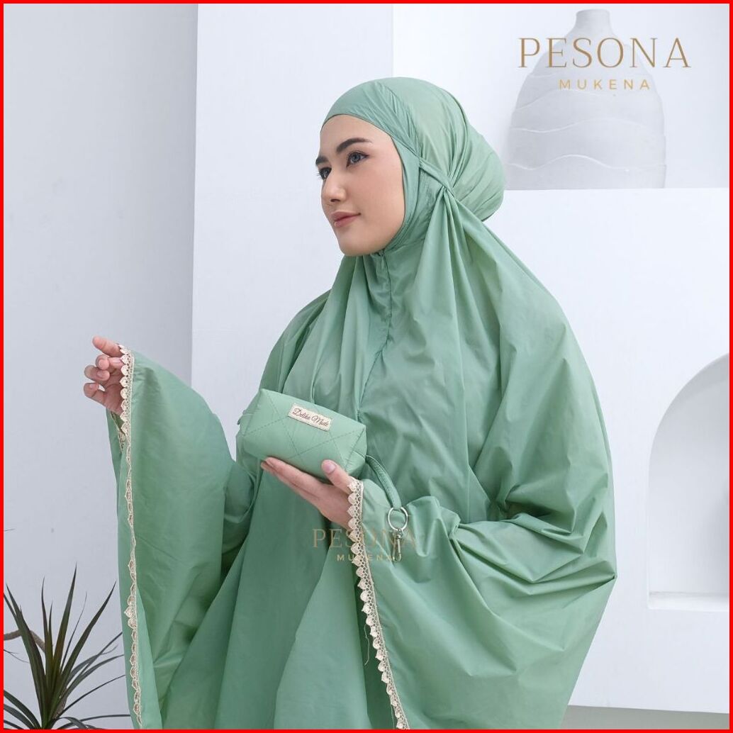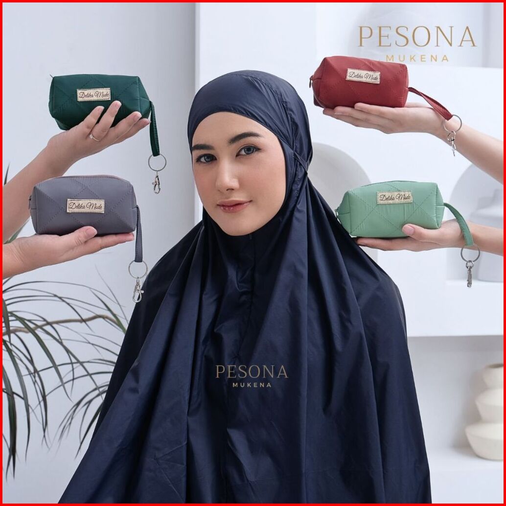 Pesona - Mukena Mini Pouch Traveling Sleting Dagu Parasut Korea Premium 2in1 Polos
