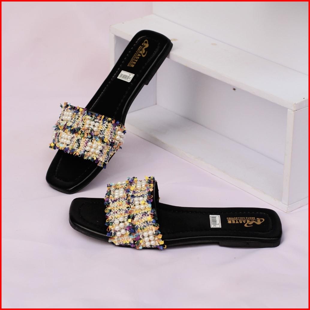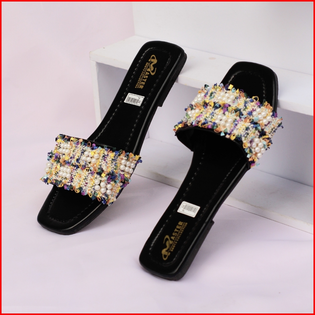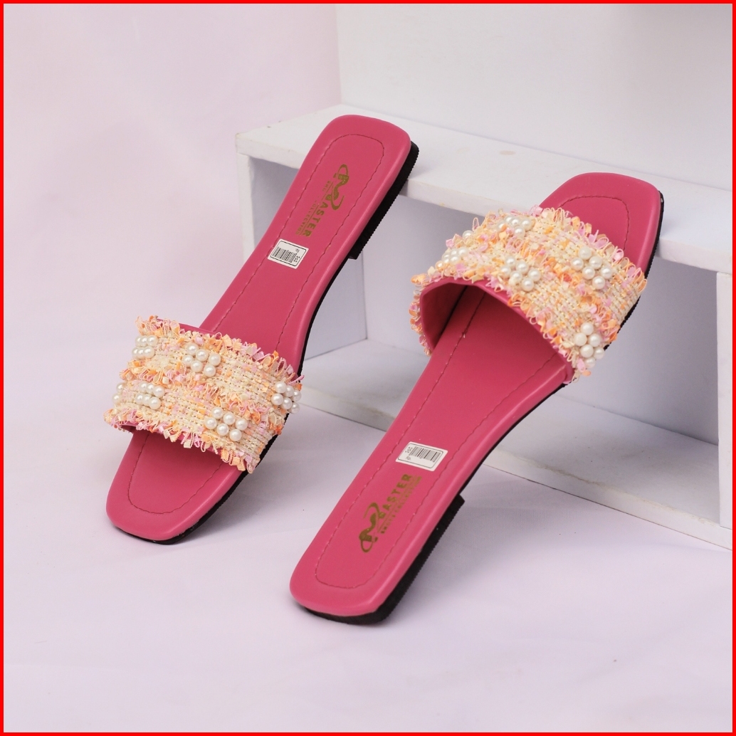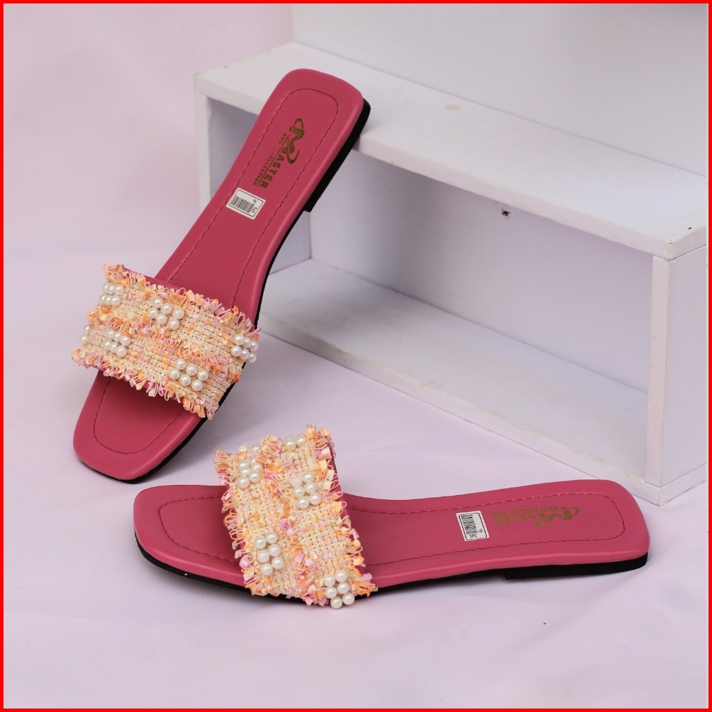 Sandal Slop Slip On Flat Teplek Wanita Variasi Mutiara Kriting Terbaru Modis Kekinian Sendal Kteplek Flip Flop Selop Cas
