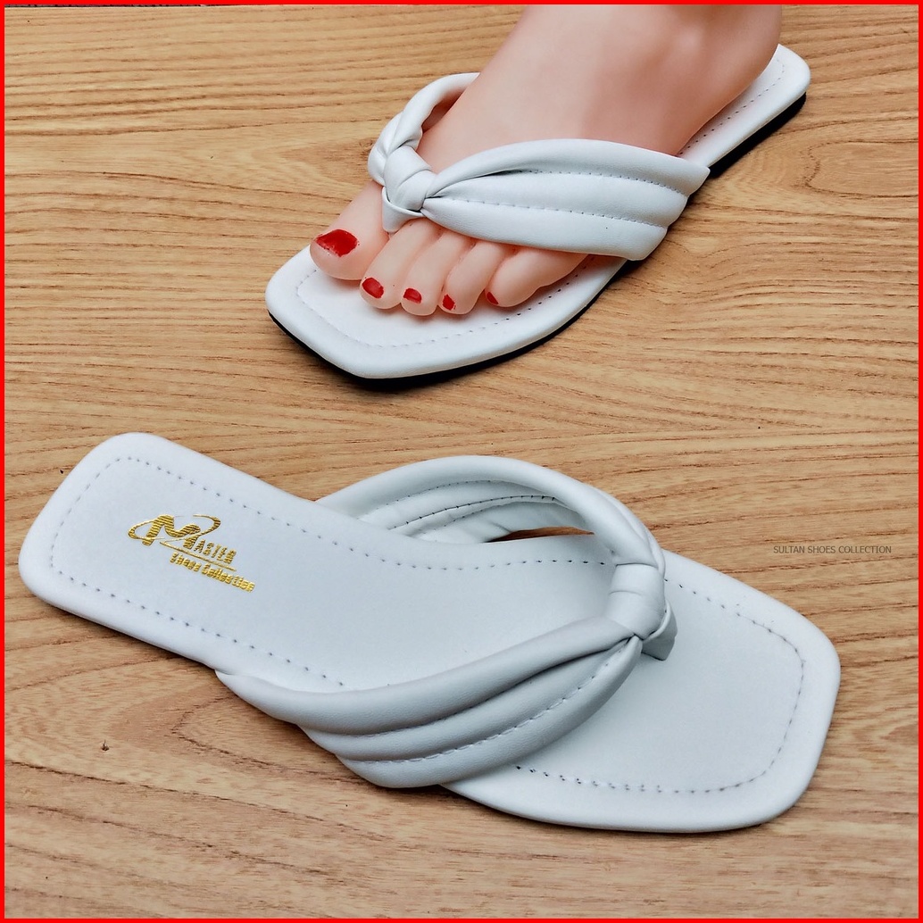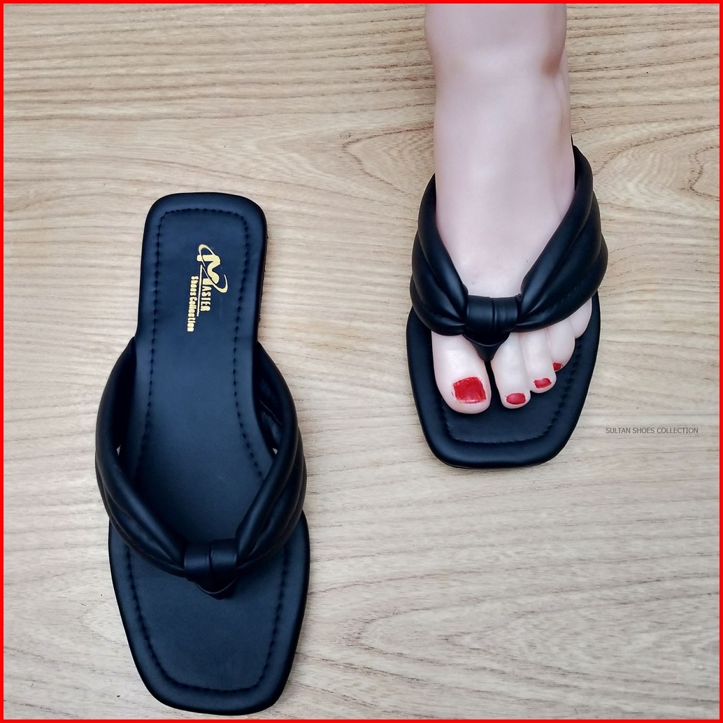 Promo Sandal Santai Flat Teplek Tali Jepit Puffy Busa Wanita Kekinian Terbaru Sendal Flat Strap Tali Busa Cewek Remaja P
