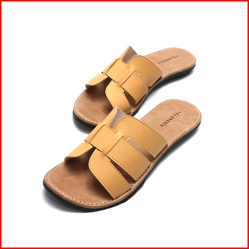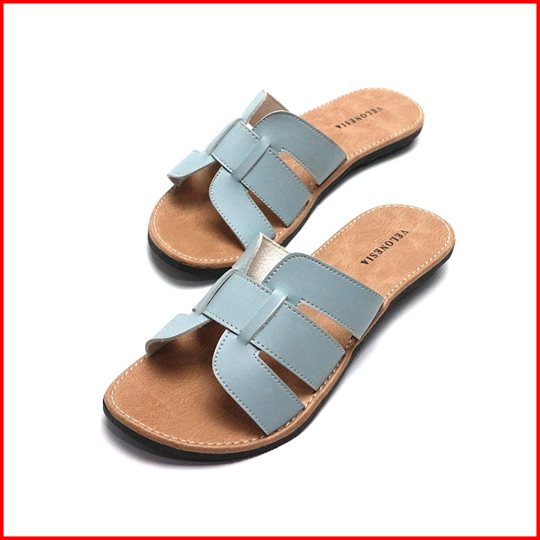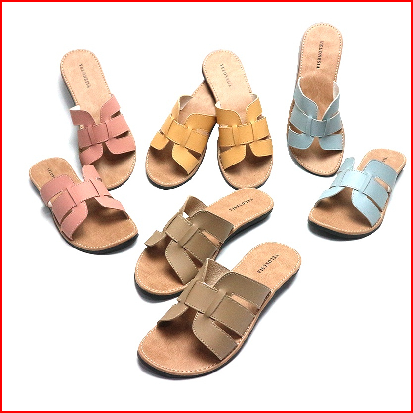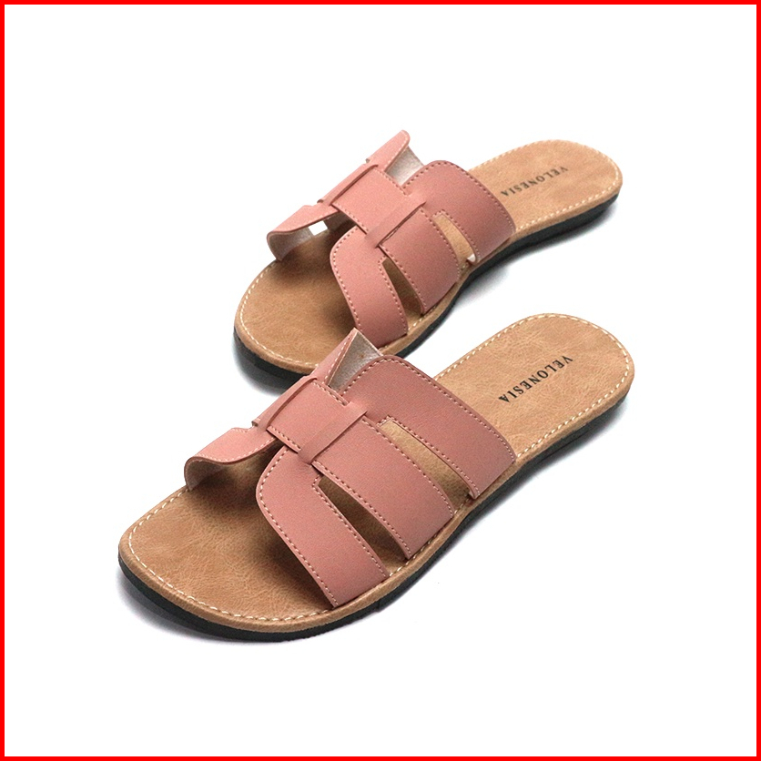 Velonesia - Imelda Sandal Wanita Bahan Kulit Sintetis Alas Karet Anti Licin Sendal Teplek Wanita