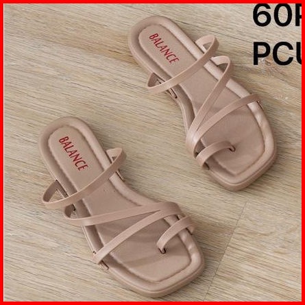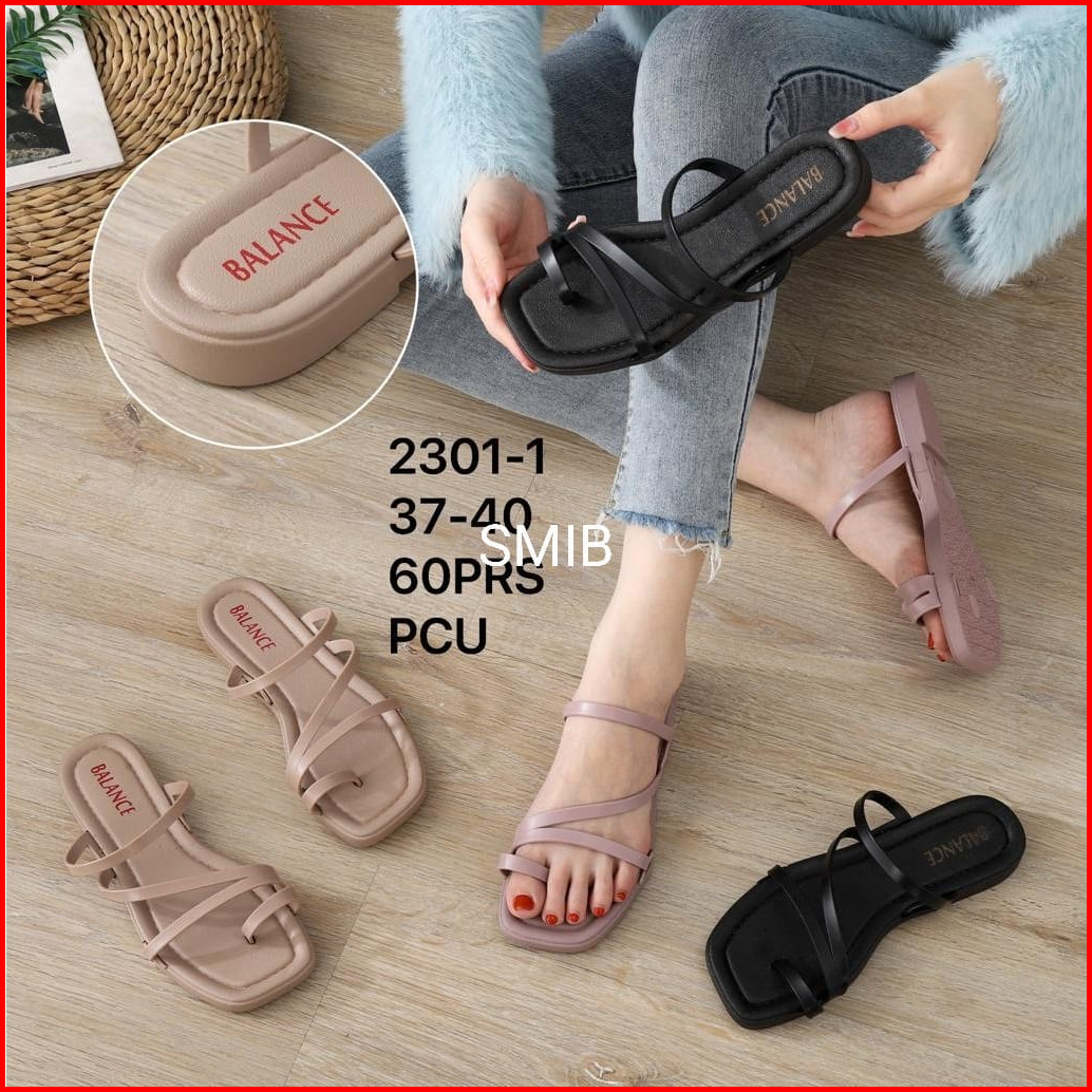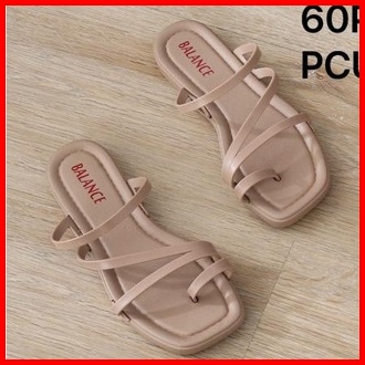 Sandal Jepit Wanita Karet Import Balance Motif Silang Sol Tipis 2301-1
