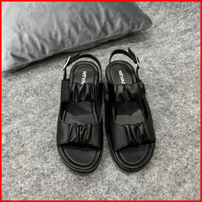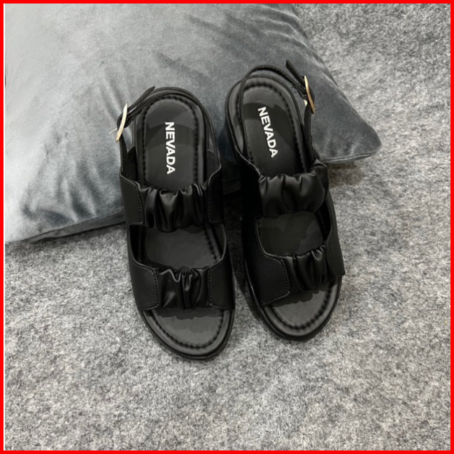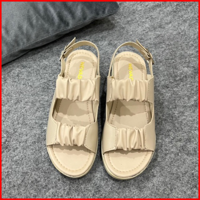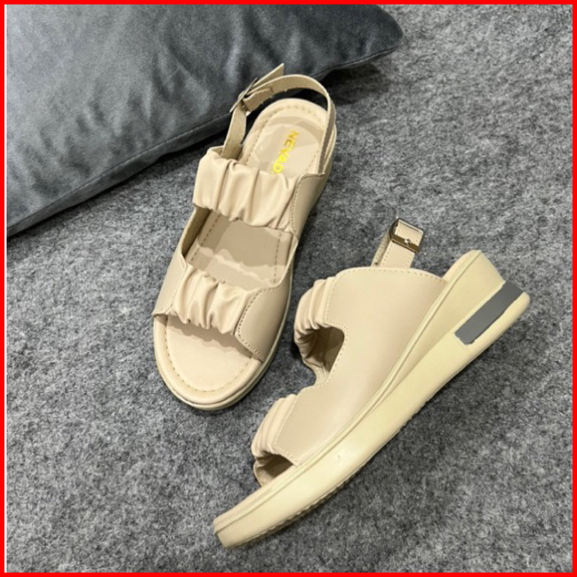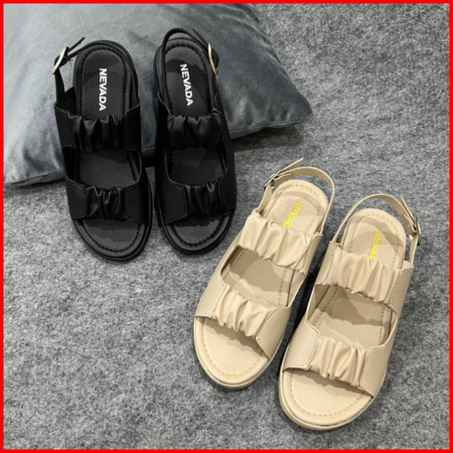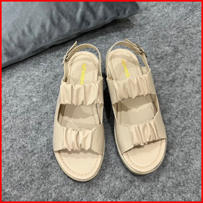 Siap Kirim Sandal Wedges Wanita Slempang Kerut Kancing