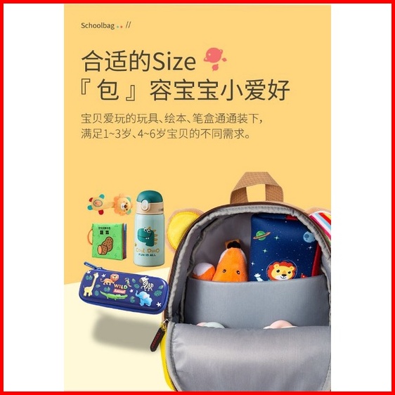 Tas Ransel Sekolah 05 Anak Karakter Lucu - Beruang Hippo Zebra Sapi Bu