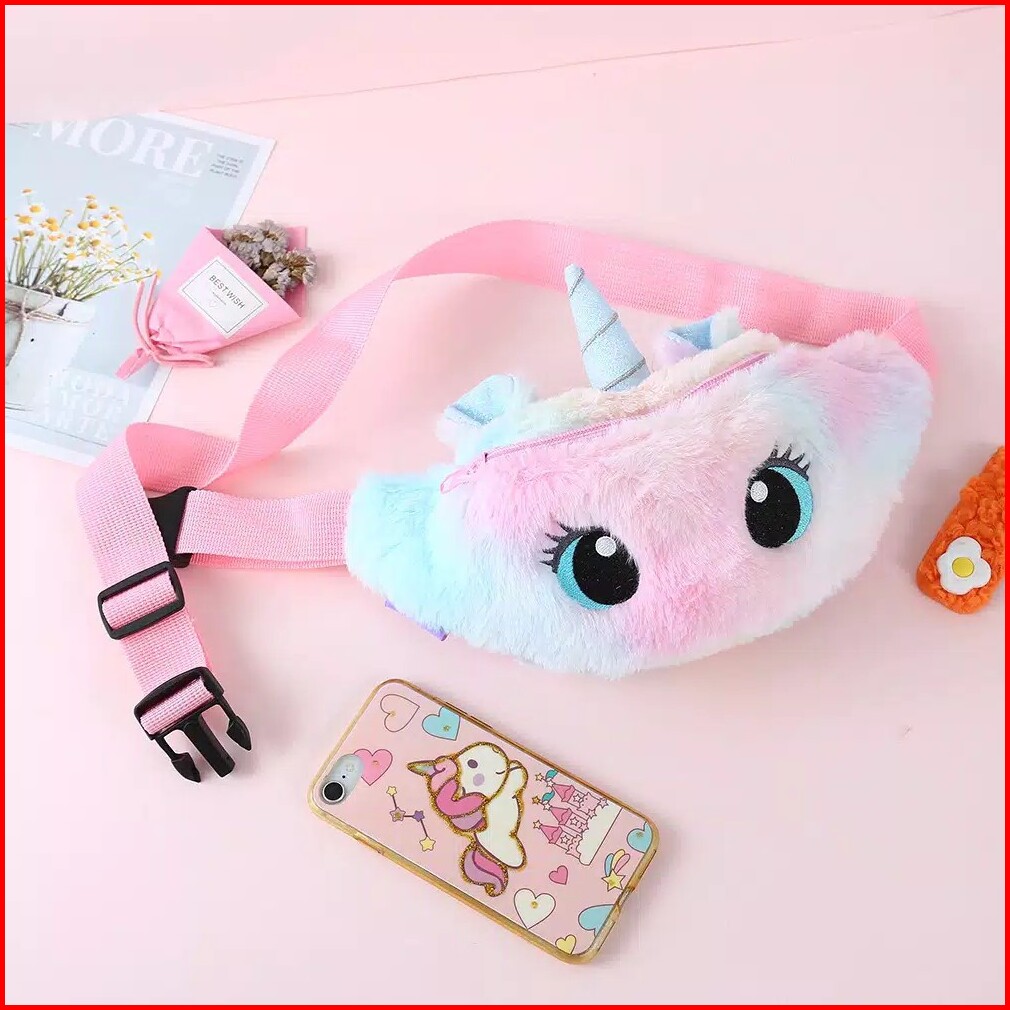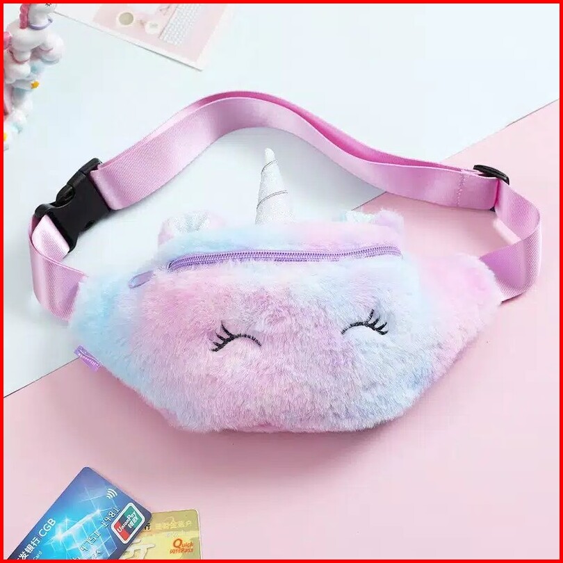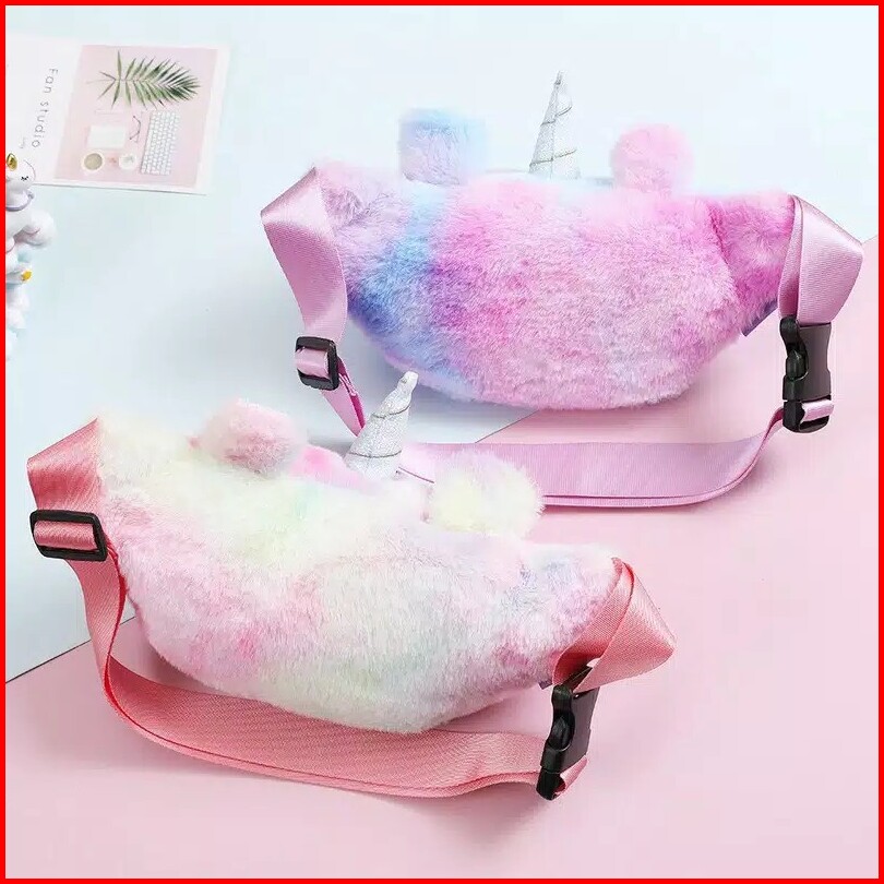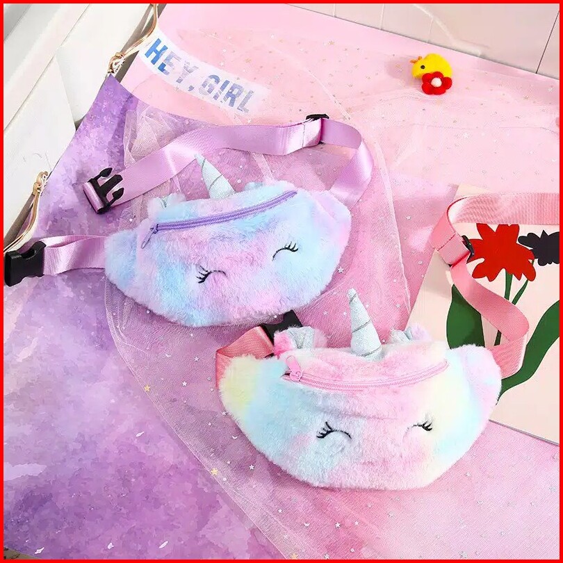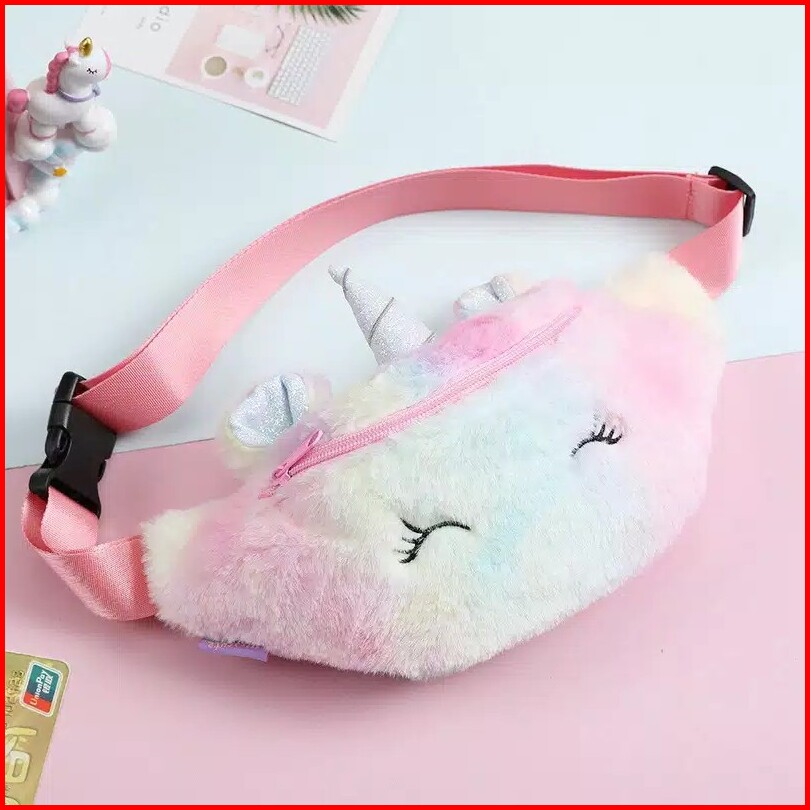 Tas Selempang Anak Unicorn Bulu Sling Bag Anak Tas Pinggang Anak Unicorn Tas Anak
